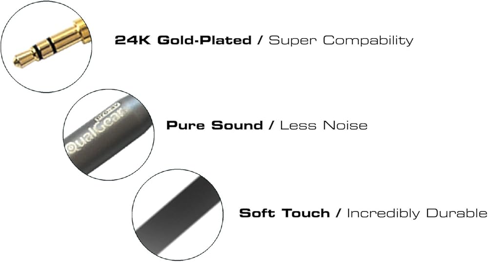 كابل مساعد كوالجير QG-ACBL-4FT يتميز بجودة صوت احترافية مع 28awg ونحاس خالٍ من الأكسجين بنسبة 100% كعلامة تجارية لسماعات الرأس. تضمن العدسات المطلية بالذهب 24 قيراط أفضل تجربة صوت ممكنة. هذا الكابل متوافق مع جميع الأجهزة الصوتية من أي هاتف أو جهاز لوحي، أو جهاز لوحي، أو جهاز لوحي، أو جهاز تشغيل الوسائط الأخرى على سماعات رأسك، أو مكبرات الصوت المحمولة، أو السيارة أو الاستيريو المنزلي (يناسب منافذ الصوت المعيارية 3.5 ملم في متر). متين بشكل لا يصدق مع عشرات الآلاف من الانحناء العمر الافتراضي لعدة مرات أطول من كابلات الصوت العادية، غلاف معدني ممتاز و 4 أقدام من السلك المرن المتين، هذا الكابل مصنوع ليدوم مدى الحياة. تسمح الوصلات الرفيعة للغاية إلى المقابس الصناعية بالاستخدام مع أي جراب هاتف أو جهاز لوحي (على عكس الكابلات الخارجية الأخرى).