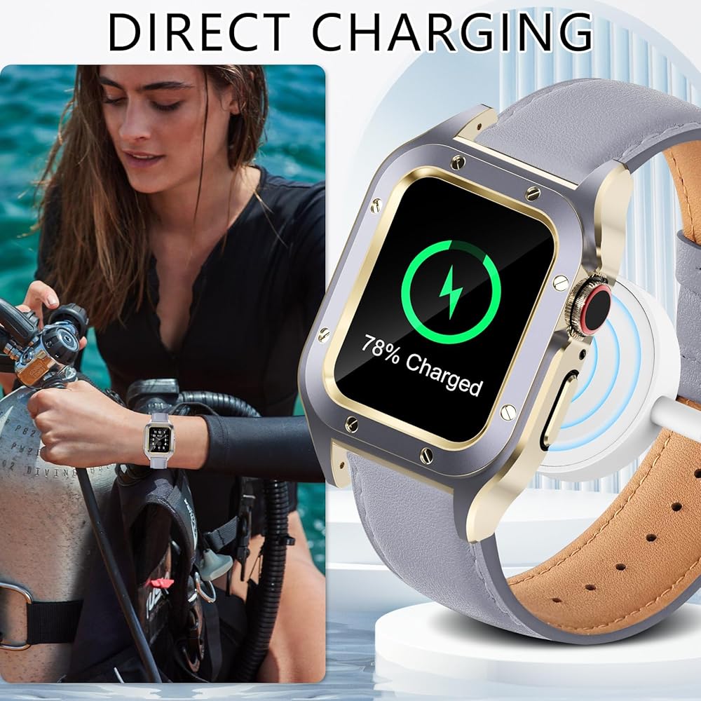 【مريحة ومستقرة】: تناسب الساعة بإحكام، تصميم دقيق للزر، سهولة الوصول إلى جميع أدوات التحكم وأجهزة الاستشعار الخاصة بساعة Apple الخاصة بك. الشحن المباشر دون إزالة الحافظة.