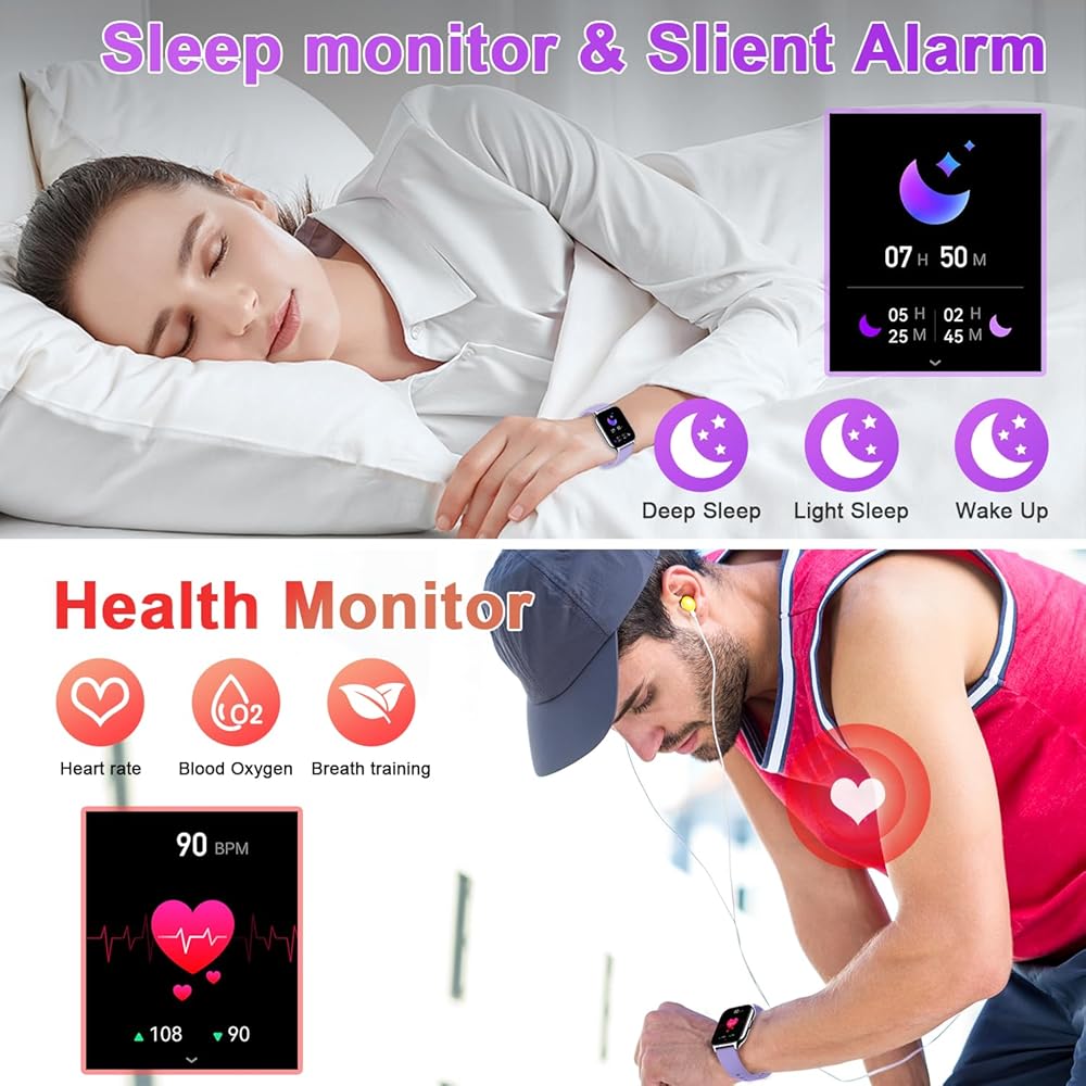 ساعة ذكية مع ساعة مراقبة معدل ضربات القلب - تستخدم الساعات الصحية للرجال والنساء أجهزة استشعار بصرية رياضية عالية الأداء، والتي يمكنها مراقبة معدل ضربات القلب والأكسجين في الدم (Sp02)، مما يساعدك على فهم صحتك بشكل أفضل وإجراء تعديل معقول لأسلوب حياتك. يمكن للرجال والنساء المتوافقين مع Android iphone مراقبة حالة نومك (النوم العميق، والنوم الضحل، والاستيقاظ) وتقديم تحليل شامل لجودة النوم للمساعدة في أن تصبح أكثر صحة. تحتوي الساعة الإلكترونية على حزامين