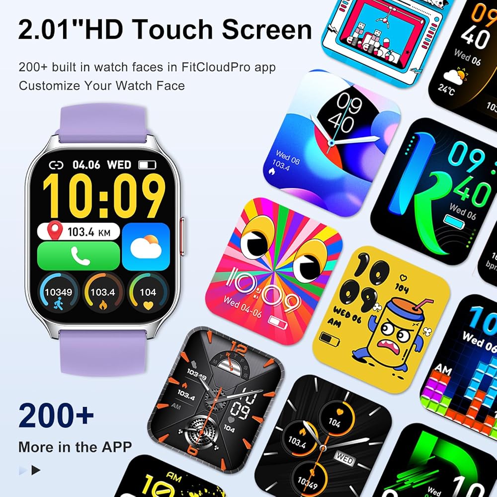 ساعات وجه كبيرة للنساء والرجال - إطار ساعة معدني عالي الملمس مع شاشة ملونة تعمل باللمس 2.01 TFT توفر لمسة مريحة وتجربة بصرية ممتازة. (الاستقبال/الاتصال الهاتفي) ويمكن عرض إشعارات الرسائل مباشرة على الشاشة. تحتوي ساعة الوجه الكبيرة على العديد من الأقراص المتاحة بسهولة للاختيار من بينها بالإضافة إلى 100 طلب آخر داخل التطبيق. يمكنك أيضًا إنشاء وجوه للمشاهدة باستخدام صورك الخاصة. يمكن أن تكون ساعة Ios Android للرجال والنساء أي صورة، مثل صورة عائلتك أو حيوانك الأليف أو غير ذلك.