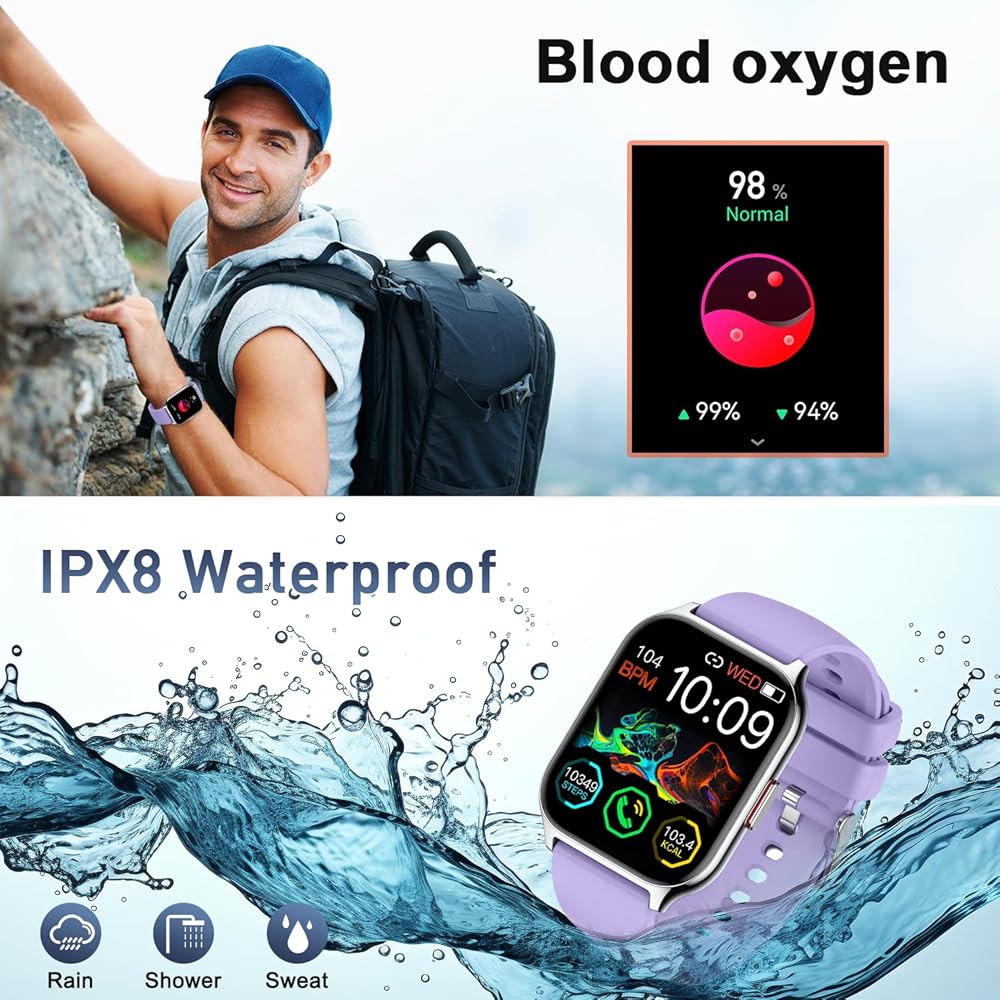 ساعات تمرين للرجال والنساء و112 وضع رياضي - ساعة عداد السعرات الحرارية دقيقة للمسار والمسافة والسعرات الحرارية. ساعة عداد الخطى تدعم 112 وضع رياضي: الجري وركوب الخيل وكرة الريشة والمشي لمسافات طويلة وما إلى ذلك لتمنحك رؤية أكثر تفصيلاً للنشاط طوال اليوم. ساعة تعقب الخطوات للرجال والنساء مقاومة للماء بدرجة IPX8، ويمكنك ارتداؤها أثناء الأنشطة الخارجية أو الأيام الممطرة أو غسل اليدين. (لا يُنصح بها للغوص أو الاستحمام أو الساونا وما إلى ذلك). ساعات الجري للرجال والنساء هي الخيار الأفضل لعشاق اللياقة البدنية