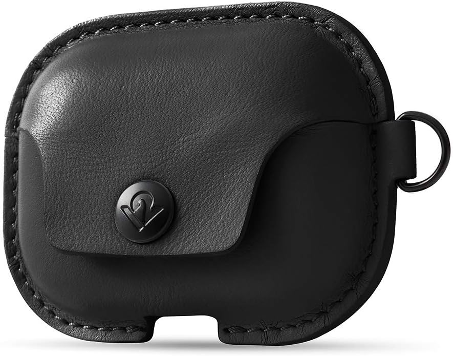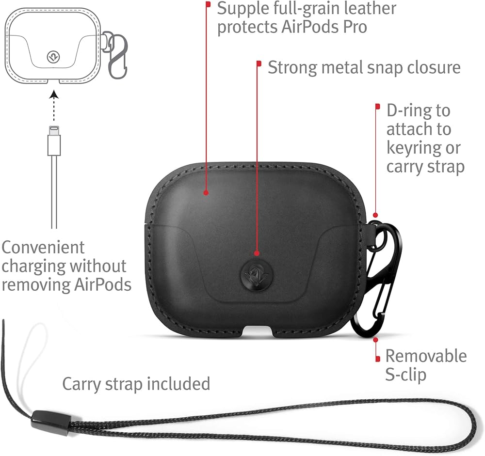 اثنا عشر جنوب AirSnap Pro | حافظة/غطاء واقٍ من الجلد المحبب بالكامل مع مشبك لمنع الخسارة وحزام حمل اختياري لسماعات AirPods Pro الجيل الأول والثاني، أسود