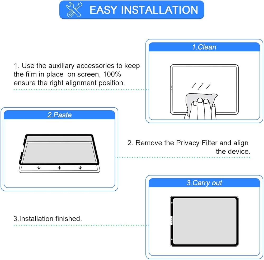 • قابلة للإزالة وإعادة الاستخدام بالكامل: يتم تثبيت شاشة الخصوصية iPad Air 3 عبر ختم سيليكون حول حافة شاشة الخصوصية. إذا أصبح السيليكون متسخًا، يمكن غسله بالماء وسيعود الالتصاق عندما يجف. تشتمل الشاشة على لوحة تثبيت بيضاء لتخزين الشاشة عند عدم الاستخدام.