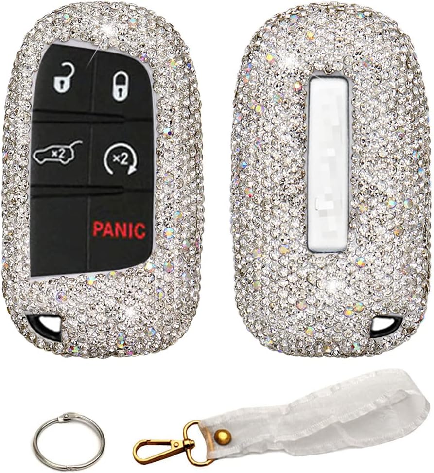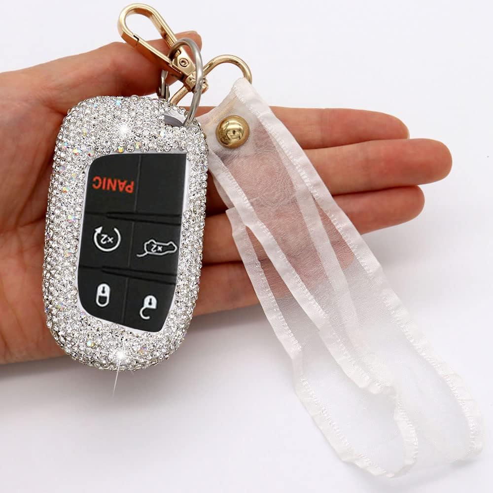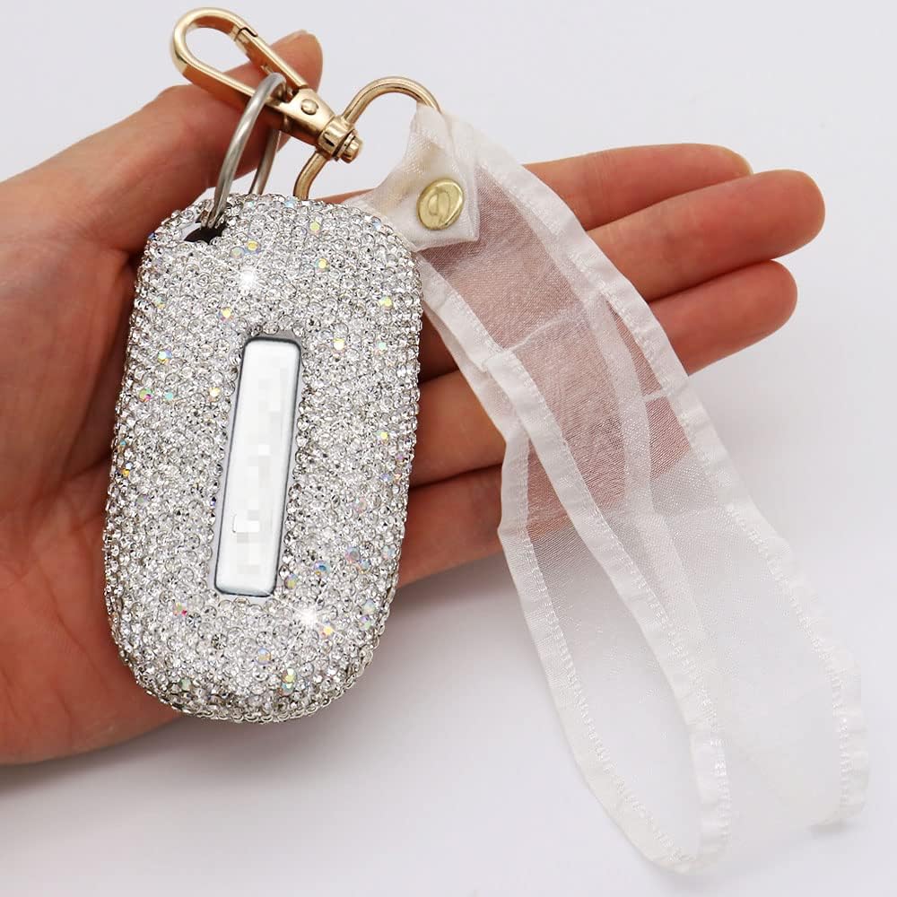 تصميم لامع: غطاء المفتاح اللامع هذا مصنوع من غلاف ABS عالي الجودة، مزين بأحجار الراين الكريستالية اللامعة، يضيف مظهرًا أنيقًا وفاخرًا لمفتاح سيارتك
