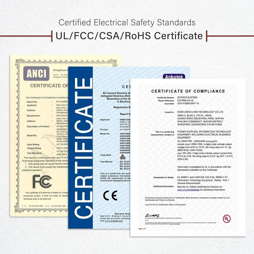 【Safest, UL Listed】Certified Electrical Safety Standards: UL 62368-1, CAN/CSA C22.2 No. 62368, FCC. IEC 62321(RoHS). Energy Saving: Level VI Energy Efficiency, reduced the no-load power requirements significantly and increased the efficiency limits of the active operating mode. The no-load power dissipation limits were aggressively cut to almost one third compared to the previous standard.