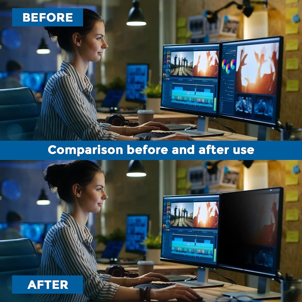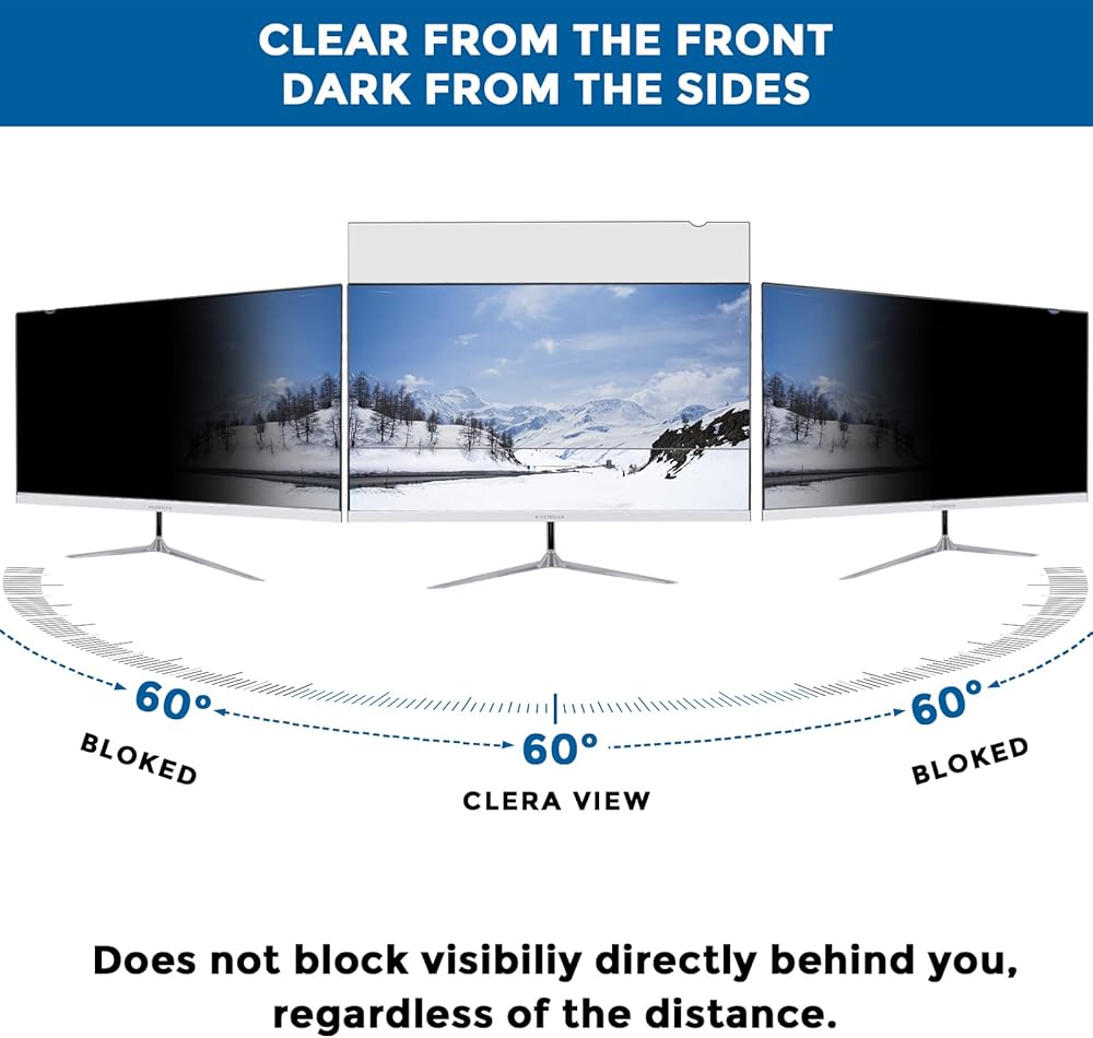 حماية بيانات الخصوصية - يحجب فلتر الخصوصية خط الرؤية على الجانب الأيسر والأيمن لشاشة العرض، وتتحول زاوية المركز إلى 30 درجة وتتحول إلى اللون الأسود تدريجيًا. لا يحجب خط الرؤية ولا يؤثر على العمل المكتبي العادي.