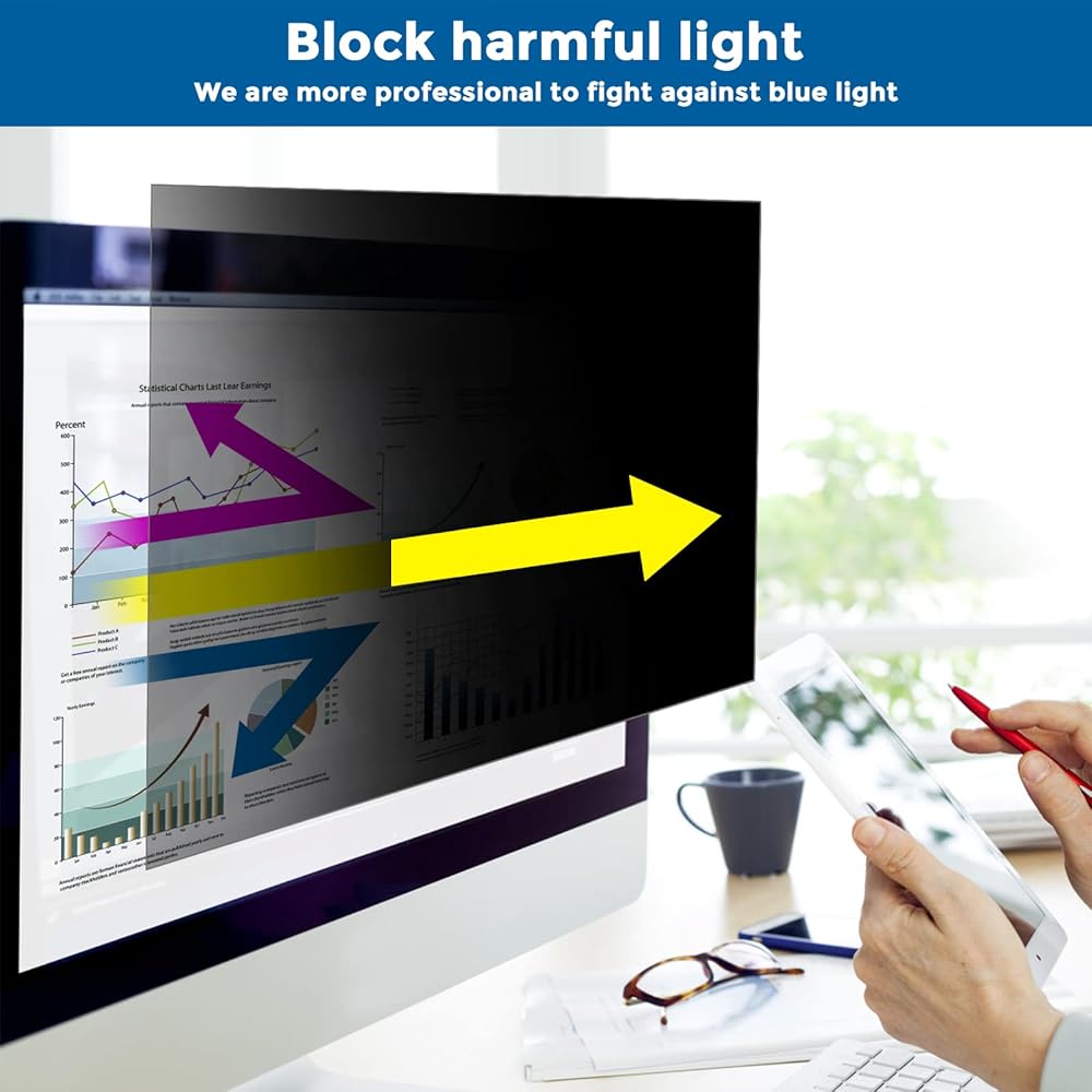 تصفية الشاشة الضوء الأزرق، تحجب الضوء بالأشعة فوق البنفسجية ——طبقة السطح المجمدة لفلتر خصوصية شاشة الكمبيوتر يمكن أن تقلل من وهج جزء من الشاشة، والتصميم المستقطب للهيكل الداخلي يمكن أن يحجب 95% من الأشعة فوق البنفسجية وتصفية 65% من الضوء الأزرق. بعد التركيب، يمكنه حماية العينين بفعالية من التأثيرات الضارة.