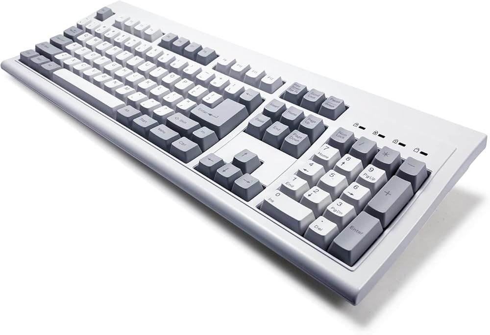 كيبورد كلاسيكي بسلك USB مع لوحة مفاتيح رقمية، 24 مفتاح بخاصية الاستجابة لضربات مفاتيح متعددة، مفتاح دخول كبير على شكل حرف L، رمادي/رمادي فاتح من السرا