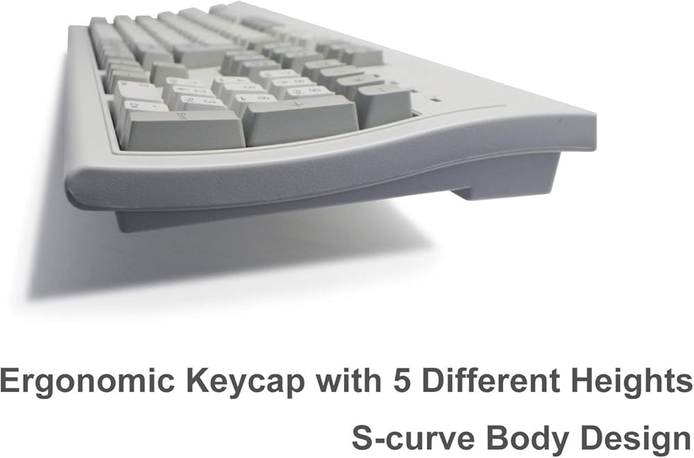 • تصميم محسن باللونين الرمادي والرمادي الفاتح مع مفتاح دخول كبير على شكل حرف L، 5 مفاتيح منحنية بارتفاع مختلف لدعم مريح