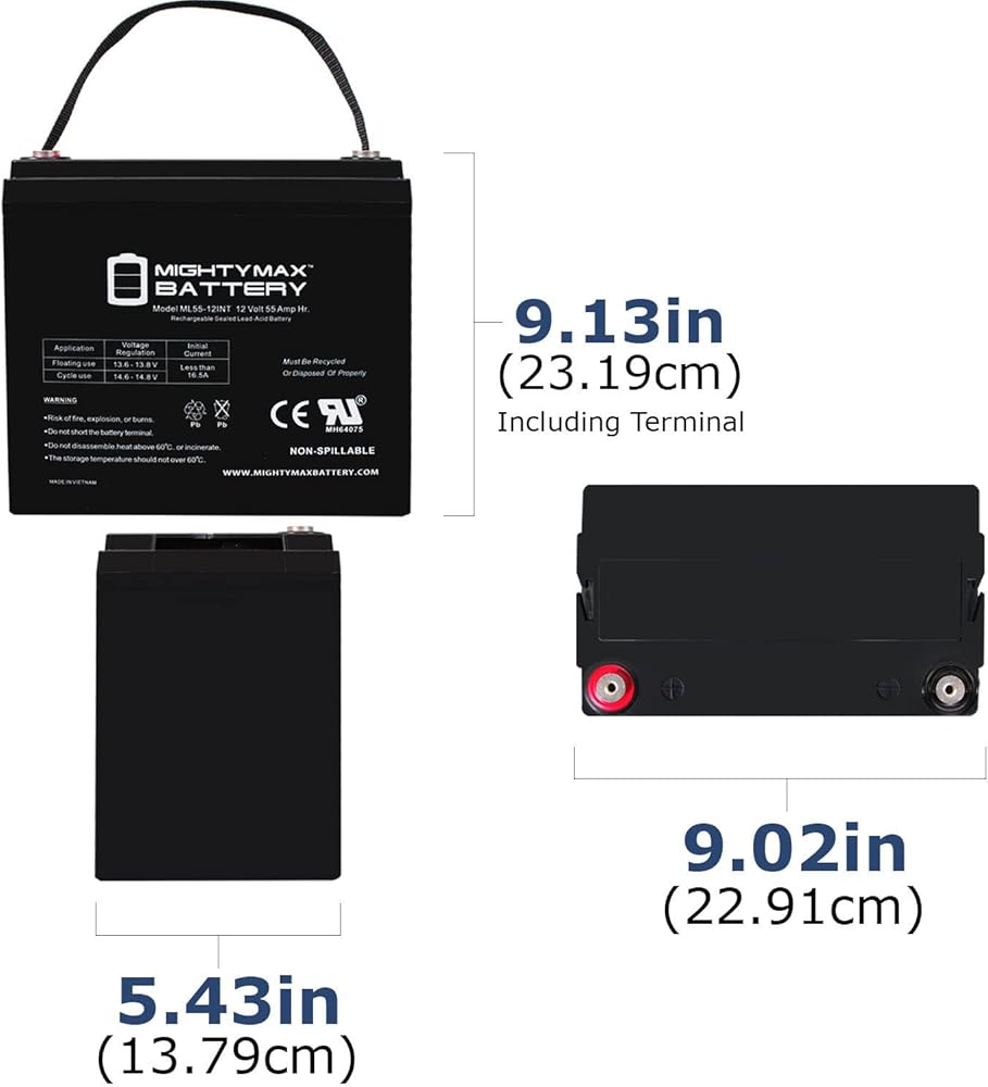 يوفر الطاقة عندما تحتاج إليها، يستخدم الخيط الداخلي Mighty Max ML55-12 12 Volt 55 AH أحدث شبكة من سبائك الكالسيوم شديدة التحمل توفر أداءً استثنائيًا وعمر خدمة في كل من التطبيقات العائمة والدورية. الخيط الداخلي ML55-12 عبارة عن تقنية حصيرة زجاجية ماصة (AGM) مع تصميم منظم للصمام، يمكن استخدامه في البيئات المغلقة والداخلية دون تسرب أو صيانة، مما يوفر أداءً فائقًا لآلاف الطرازات. تُستخدم بطاريات Mighty Max SLA في مجموعة واسعة من التطبيقات بما في ذلك؛ الإلكترونيات الاستهلاكية، المركبات الكهربائية، مشغلات المحركات، عربات الجولف، الصيد، أدوات الحديقة والحدائق، التنقل الطبي، الدراجات النارية، رياضات الطاقة، الأدوات المحمولة، الطاقة الشمسية، الألعاب والهوايات، أجهزة التحكم في الوصول، إضاءة الطوارئ، الأمن والمزيد.