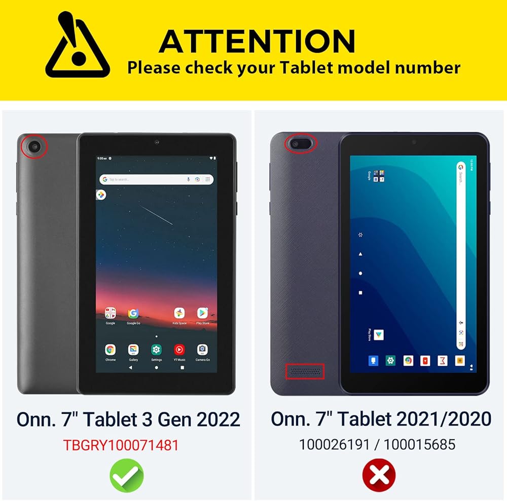 【جهاز لوحي Onn 7 2022】تم تصميم الجراب لجهاز Walmart Onn 7 Gen 3 Tablet إصدار 2022 (الموديل: 100071481). غير متوافق مع أي جهاز لوحي آخر