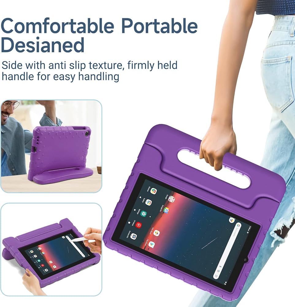 【سهلة الحمل】مقبض كبير مصمم لقبضة مريحة بيد واحدة لسهولة الحمل والسفر. إسفنج EVA آمن للأطفال لحماية جهازك اللوحي Onn 7 2022