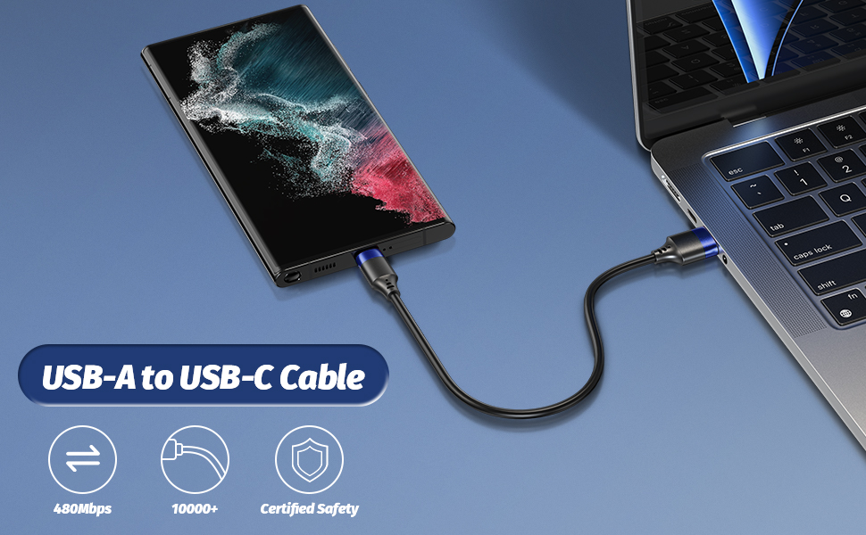 توصيل USB C: هذا كابل USB-A إلى USB-C. دعم الشحن السريع للهواتف والأجهزة موصل USB-C. غلاف ألومنيوم ممتاز يجعل الكابل أكثر متانة.