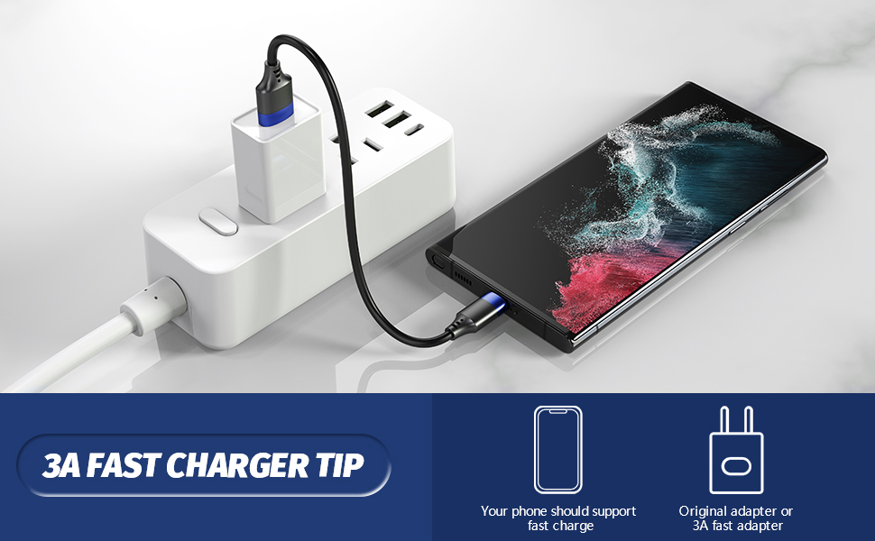 الشحن السريع ومزامنة البيانات: يدعم الشحن الآمن عالي السرعة (5 فولت/3 أمبير) ونقل البيانات بسرعة (480 ميجابت في الثانية). نقترح عليك استخدام المحول الأصلي أو المحول السريع 3A مع هذا الكابل من النوع c للاستمتاع بالشحن السريع.