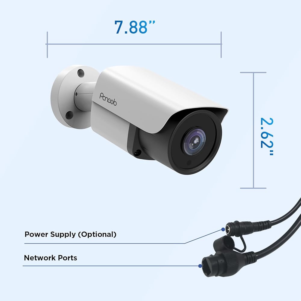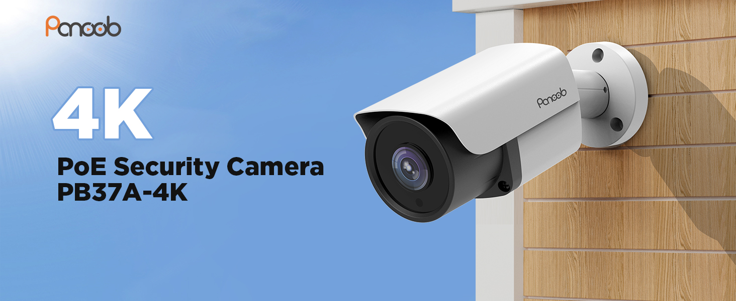 كاميرا أمان PANOOB 4K، كاميرا UltraHD 8MP سلكية للمراقبة بالرصاص IP PoE في الهواء الطلق، كشف الإنسان/المركبة بالذكاء الاصطناعي، ميكروفون مدمج، رؤية ليلية بالأشعة تحت الحمراء 100 قدم، IP67 مقاومة للطقس، PB37A-4K