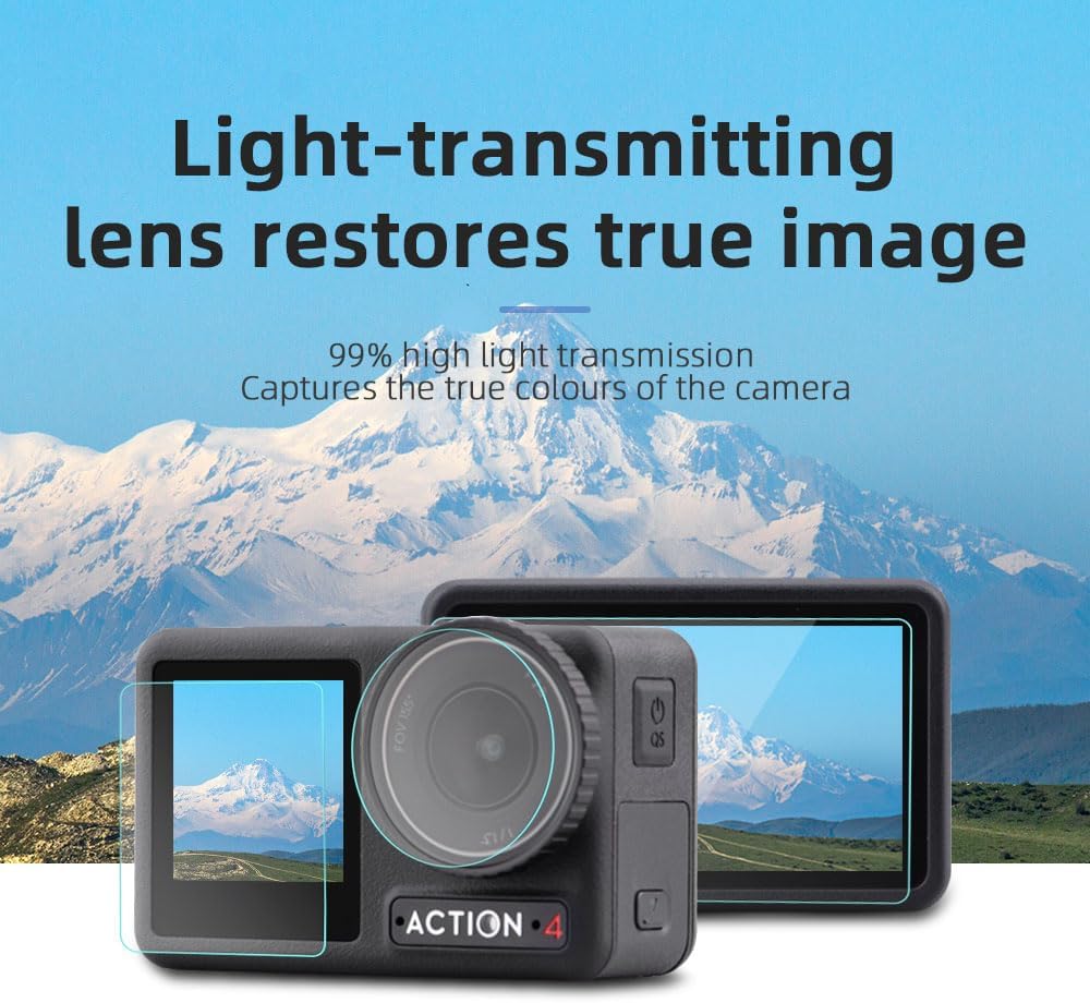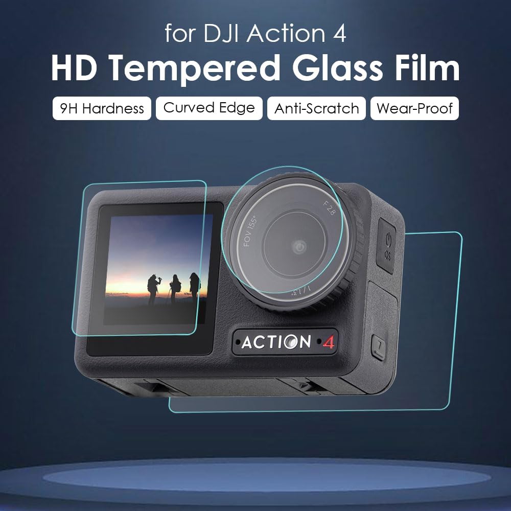 واقي شاشة لكاميرا دي جيه اي اوسمو اكشن 4 من زيناني، غشاء من الزجاج المقوى عالي الدقة بدرجة صلابة 9، حافة منحنية مقاومة للاهتراء والخدوش وبصمات الأصابع (عبوة من قطعتين)