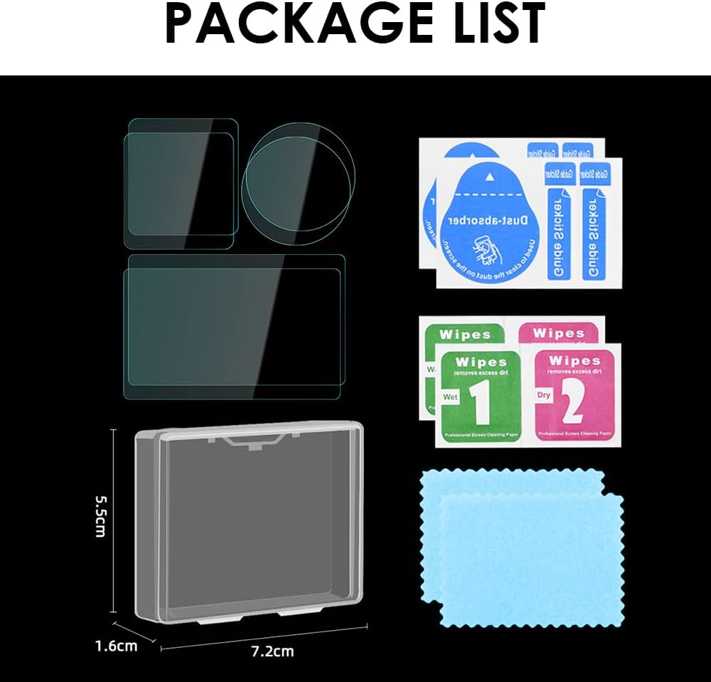 5- قائمة العبوة: مجموعتان من واقيات الشاشة (الكاميرا والملحقات الأخرى غير متضمنة!!!)