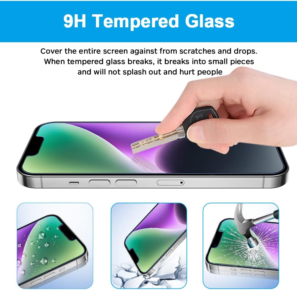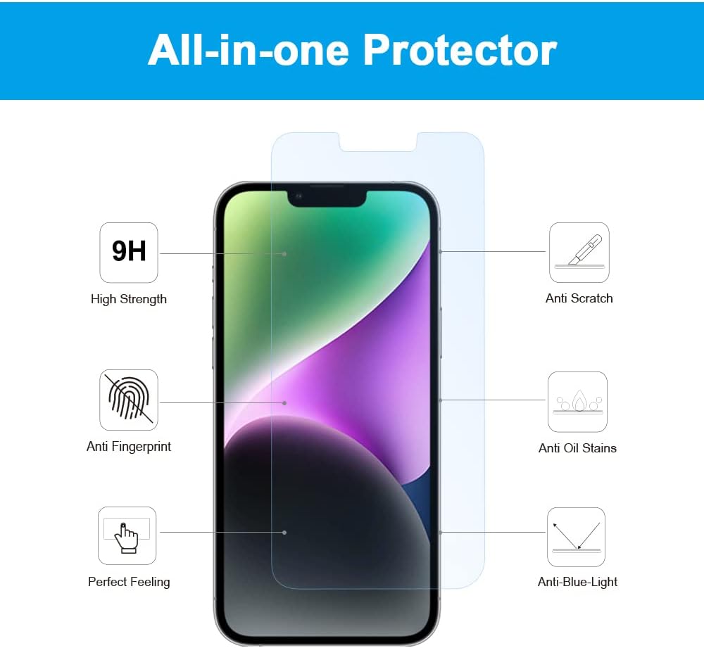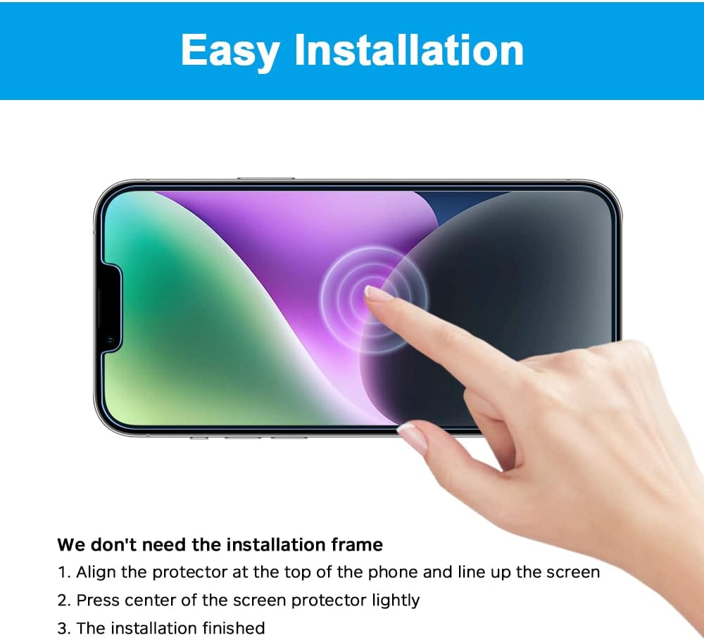 مناسب للجراب: يجعل واقي الشاشة المضاد للضوء الأزرق يناسب شاشتك بشكل كبير دون القلق بشأن رفع الحواف، يتميز غطاء الشاشة بتصميم حافة منحنية 2.5D، يناسب تمامًا جميع أنواع حافظات ايفون 14.