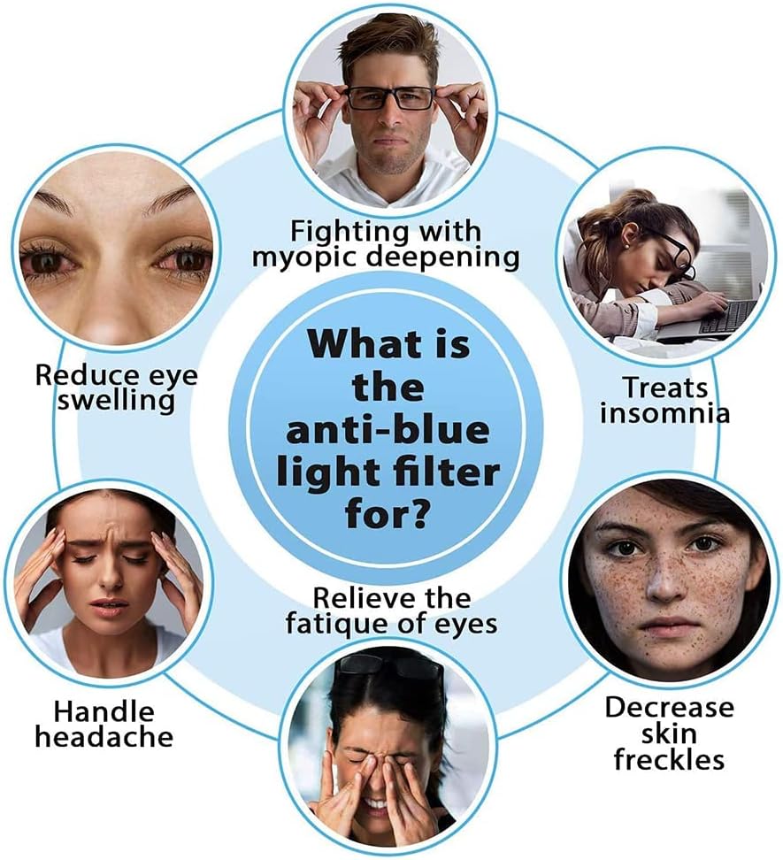 ترشيح الضوء الأزرق: يتميز بتقنية ترشيح الضوء الأزرق لتقليل إجهاد العينين وجفاف العينين وخطر الإصابة بأمراض العينين. يزيل الضوء الأزرق من شاشات الهاتف المحمول لحماية العينين ومكافحة الدوار.
