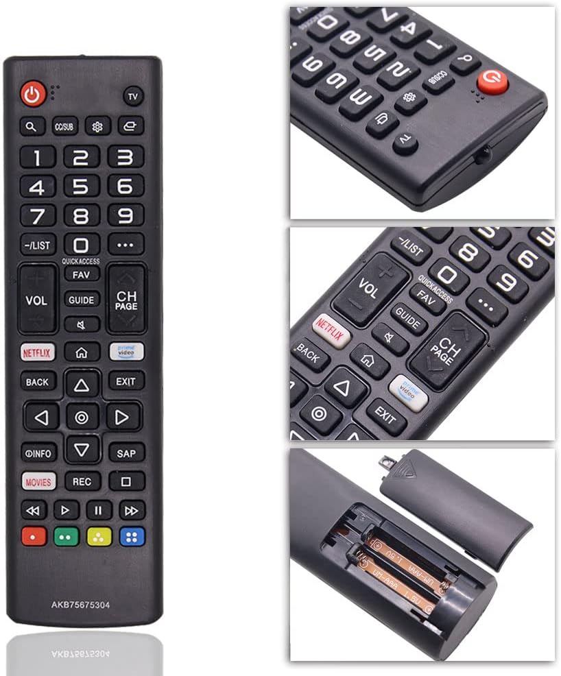 جهاز تحكم عن بعد لتلفزيون ال جي AKB75675304 بديل لتلفزيون ال جي الذكي عالي الدقة. جهاز التحكم عن بعد هو جهاز تحكم عن بعد قياسي بالأشعة تحت الحمراء. لا حاجة إلى إعداد، فقط أدخل بطاريتين ايه ايه ايه (غير مزودتين) ويمكنك استخدامها مباشرة. الأزرار والوظائف هي نفس جهاز التحكم عن بعد الأصلي. 100% متوافق مع جهاز التلفزيون الخاص بك.