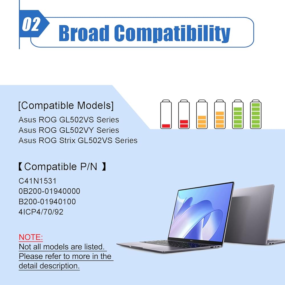 • 【نماذج الكمبيوتر المحمول المتوافقة】 بديل لجهاز Asus ROG GL502VS GL502VS-1A GL502VS-1E GL502VS-DB71 GL502VS-DS71 GL502VS-FY028T GL502VS-FY030T GL502VS-FY039T GL502VY GL502VY-1A GL 502VY-DS71 GL502VY-DS74 GL502VY-FI048T GL502VY-FI063T GL502VY-FI076T سلسلة GL502VT GL502VT-1B؛ سلسلة أسوس ROG Strix GL502VS GL502VS-FY032T.