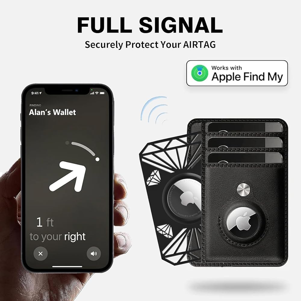 ♥【Design】:The Airtag card is carved with a beautiful diamond shape, placing the tracker in a very fixed corner, not only does not affect the beauty of the wallet, but also prevents the loss of the tag, which is very helpful in protecting the wallet, ultra-light (7 grams) ultra-thin (0.12 inches).