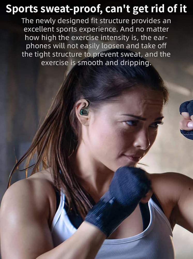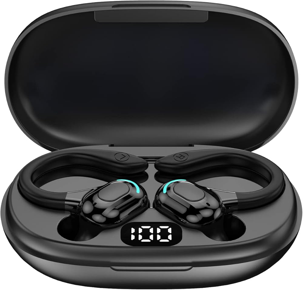 🔋【LED Digital Display and Fast Charging】Wireless earbuds show the remaining charge level of the charging case by the number on the charging case screen.The charging case has a built-in 400mAh battery,and two fully charged headphones can get up to 5 hours of music playback time.The charging case can charge the dual sport earbuds 5 times for a total of 30 hours of music playback,and supports Type-C fast charging.