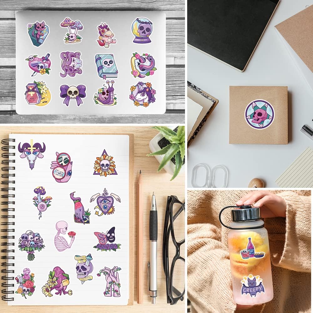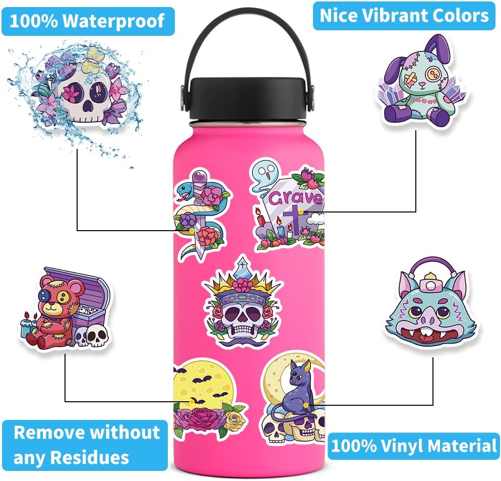 مجموعة 100 قطعة من ملصقات الفينيل القوطية اللطيفة، ملصقات رعب رائعة مقاومة للماء لزجاجة المياه، سجل القصاصات، الكمبيوتر المحمول، حافظة الهاتف، الفتيات المراهقات والبالغين حزمة هدايا قوطية لطيفة