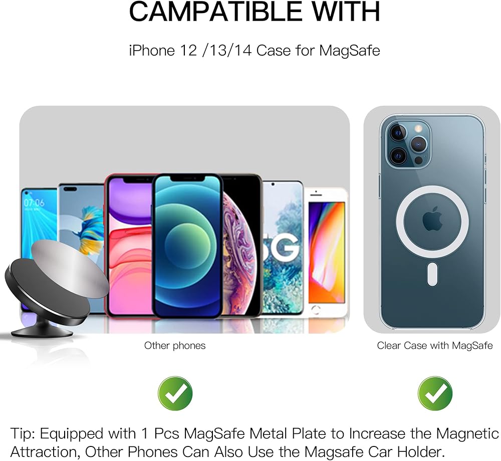 • مصمم لهاتف ايفون سلسلة 12/13 مصمم بشكل منفصل لهاتف ابل ايفون سلسلة 12/13 وجراب ماج سيف. يناسب ايفون 13/12، ميني، برو، برو ماكس. يمكن استخدامه دون لصق اللوحة المعدنية