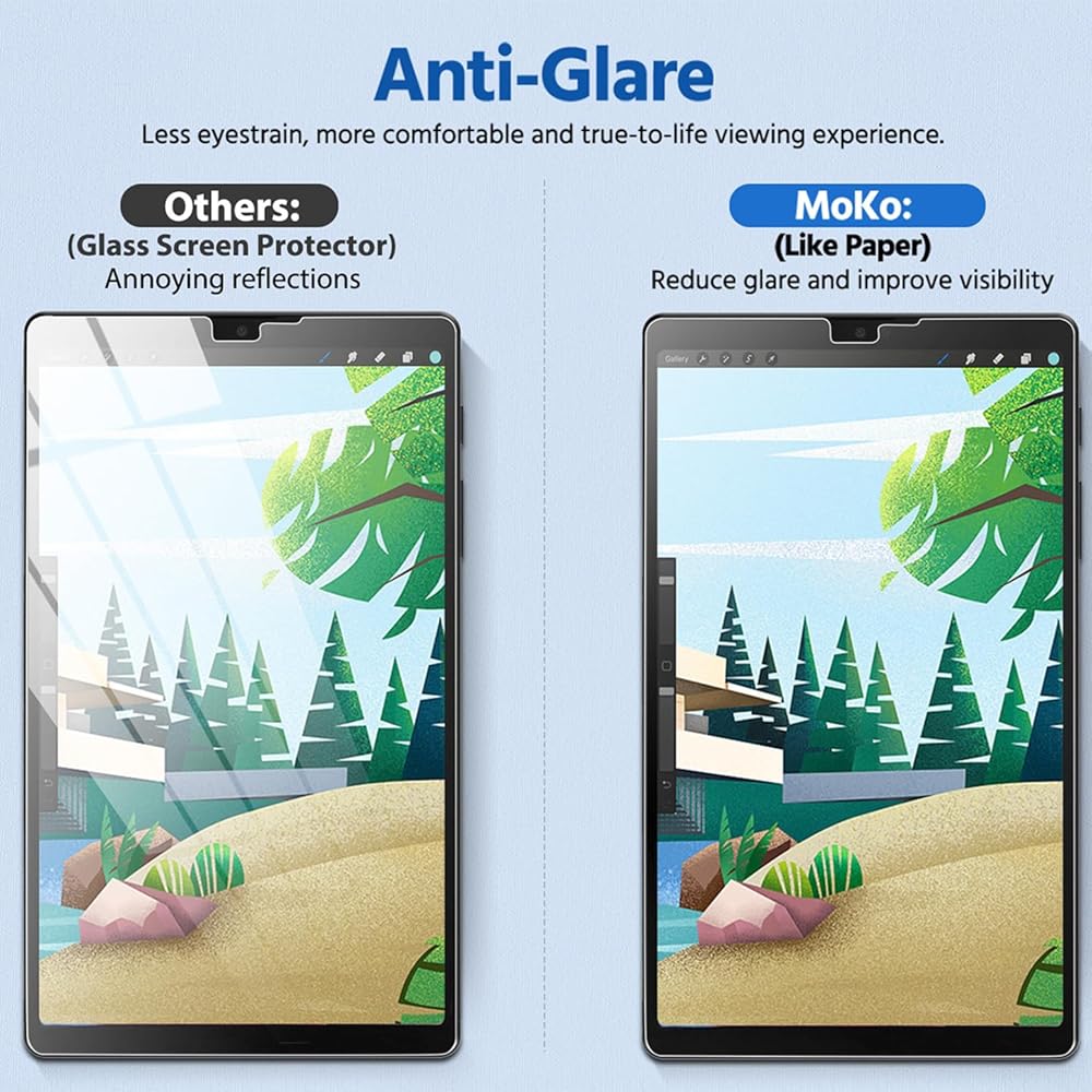 لمسة ناعمة: سطح غير لامع خاص يجعل واقي الشاشة هذا أكثر ملاءمة عند استخدام قلم الكتابة والرسم والرسم والتصميم على الشاشة. اجعل المستخدمين لديهم شعور بالكتابة على الورق. وفي الوقت نفسه، يمكن للسطح غير اللامع أن يقلل من الانعكاسات بجميع أنواعها لحماية عينيك.