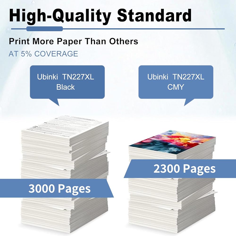 Print pages more than more: up to 3, 000 pages per TN-227BK toner and 2,300 pages for per TN227c/m/y toner (at 5% coverage of letter A4)