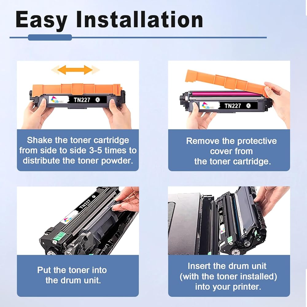 Package contents: including 2 x TN227BK, 1 x TN227C, 1 x TN227M, 1 x TN227Y (Total 5 Pack With Chip) Compatible for Brother HL-L3210CW HL-L3290CDW HL-L3230CDW MFC-L3750CDW Toner Cartridge