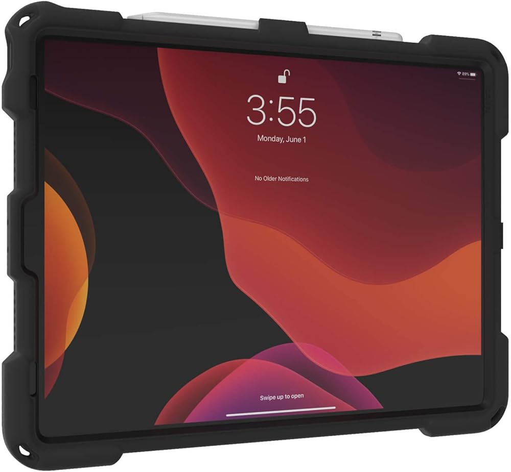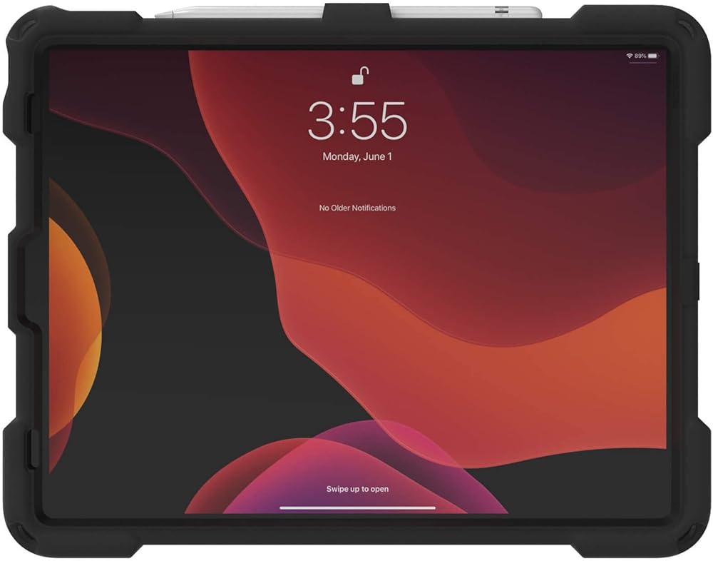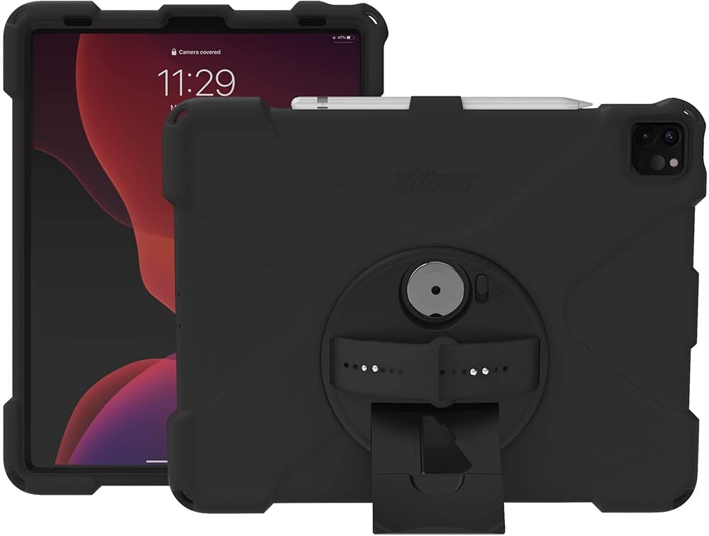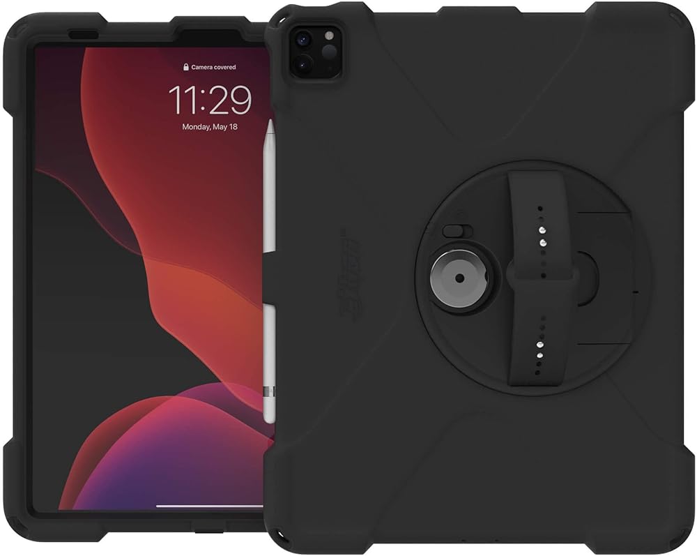 واقي شاشة مدمج وقابل للاستبدال وشديد التحمل. يتميز بحزام يد دوار ومسند منزلق للخارج. يدعم وضع العرض الأفقي وأوضاع الكتابة الأفقية والبورترية. يدعم حزام الكتف (يباع بشكل منفصل)