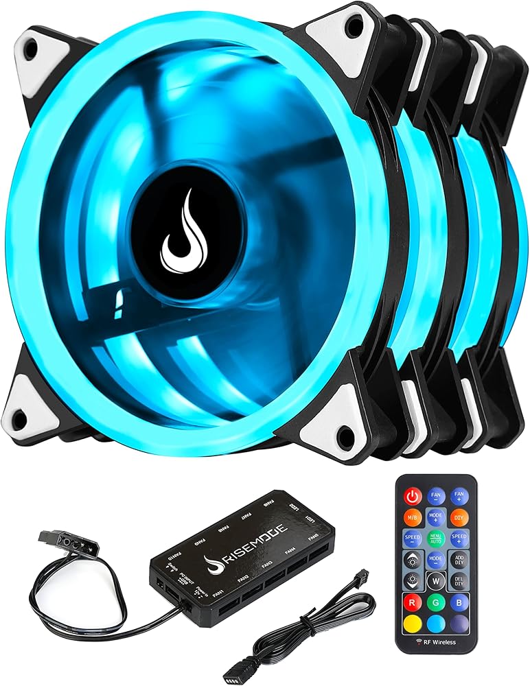 3X مروحة تبريد لحالة الكمبيوتر - وضع الارتفاع - ذكي - 120 مم - RGB - اللوحة الأم 12 فولت - جهاز التحكم عن بعد