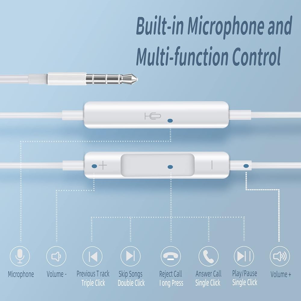 【ميكروفون مدمج - زر متعدد الوظائف】ميكروفون مدمج عالي الدقة في سماعات الأذن ووظيفة زر التحكم في الأسلاك تتيح لك الرد على / تعليق / تشغيل / إيقاف / أغنية تالية / سابقة دون التقاط الهاتف، مما يجعل من السهل استخدامه.