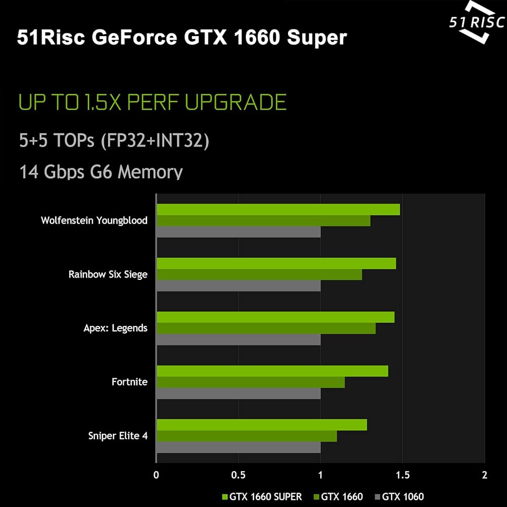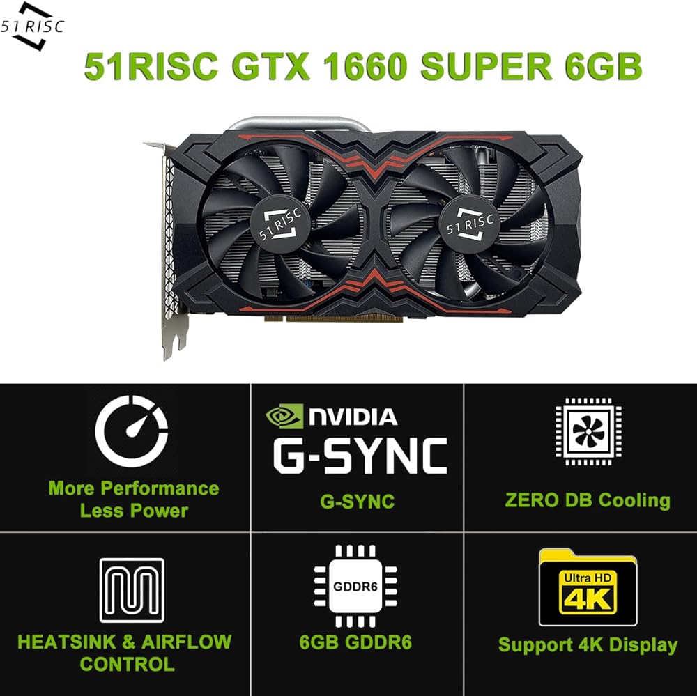 Fantastic Card for Budget Gamers: 51Risc GTX 1660 Super is a GOOD choice for 1080P Gaming players on a tight hardware budget. You will get improved power efficiency over the previous generation for a faster, cooler and quieter gaming experience, You don't need to spend a lot for upgrading your PC with a less than 500W PSU and a PCIe 3.0 motherboard when you choose our GTX 1660 super video card.