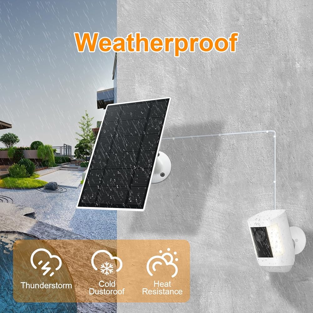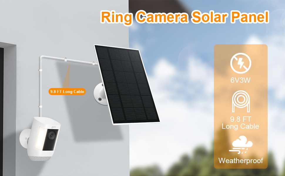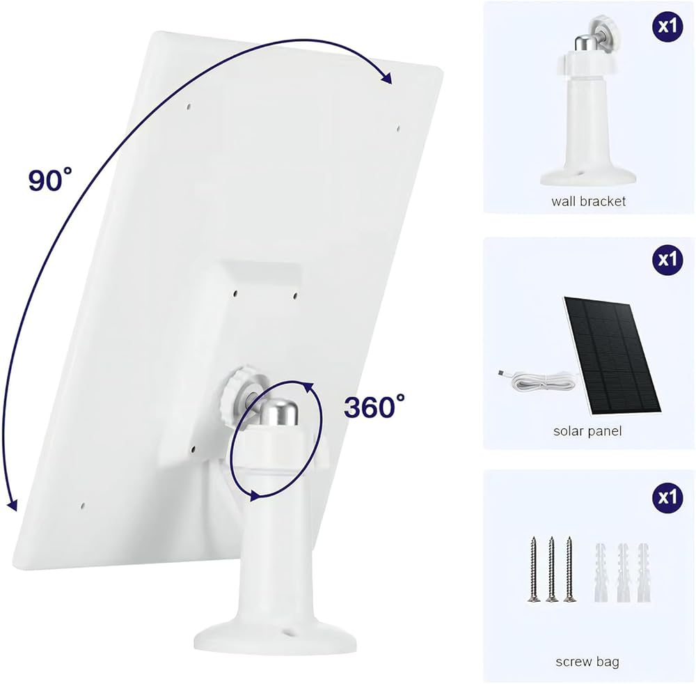 【محتويات العبوة】1 × لوحة شمسية حلقية، 1 × كيبل تيار مستمر 3 متر (9.8 قدم)، 1 × دعامة تثبيت 360 درجة، عبوة مشابك كيبل دائرية مع مسمار ستيل، الكاميرا غير متضمنة.