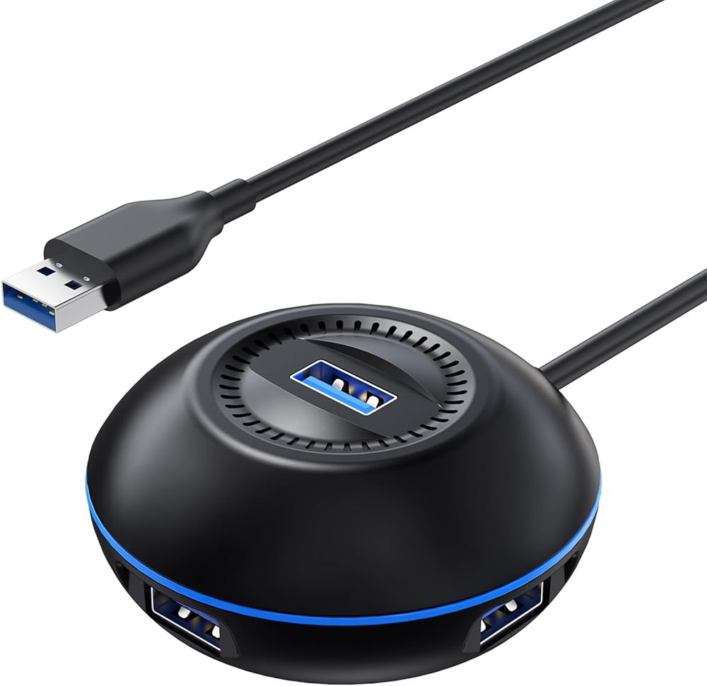 YOIGO 4-Port USB 3.0 Hub، موزع بيانات USB بتصميم رائع للغاية مع كابل تمديد بطول 1 قدم لأجهزة MacBook وMac Pro وMac Mini وiMac وSurface Pro وXPS والكمبيوتر الشخصي ومحرك أقراص فلاش (1 قدم)
