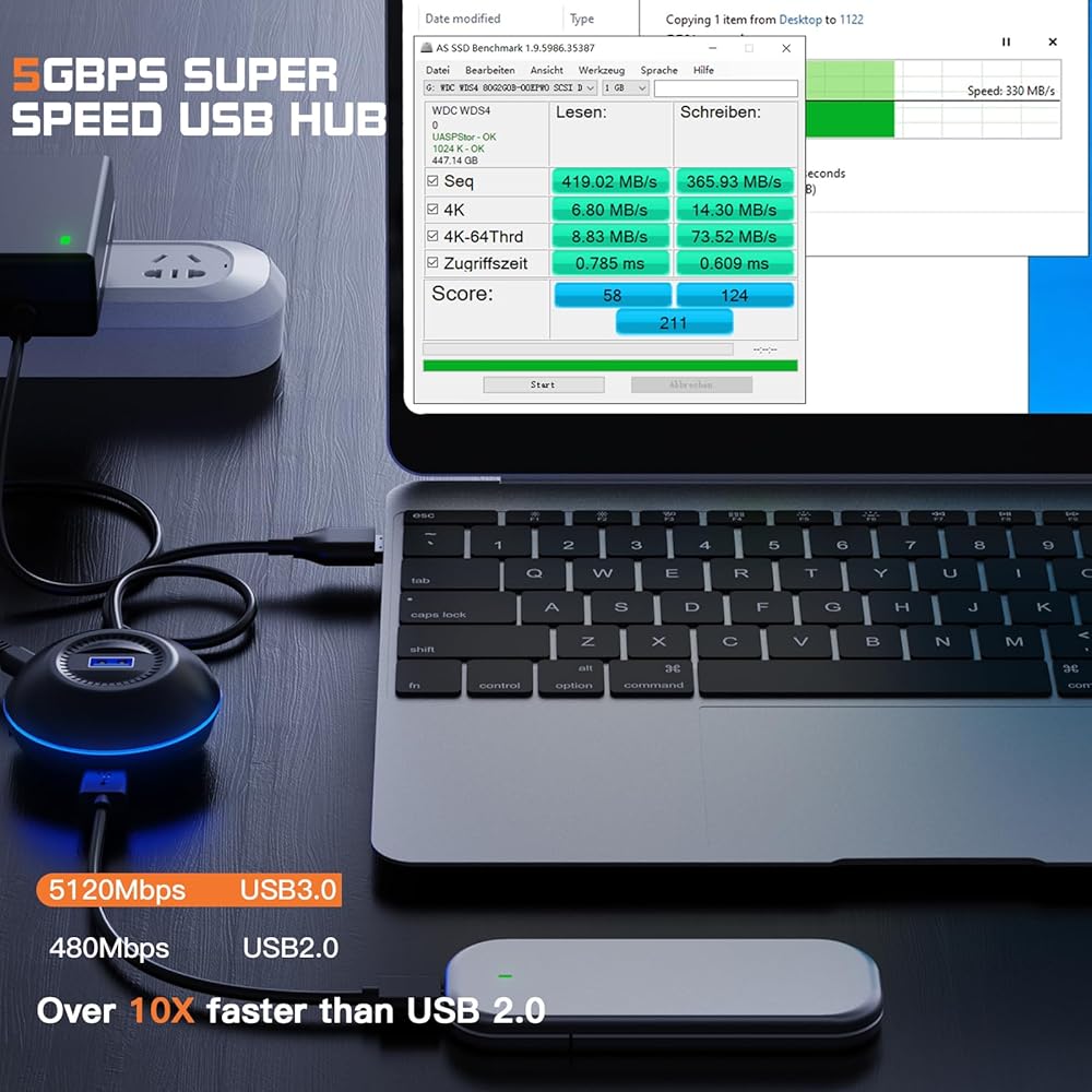 توسيع كبير: قم بتحويل منفذ USB لجهاز الكمبيوتر الخاص بك إلى أربعة. (هذا المركز غير مخصص لشحن الأجهزة).