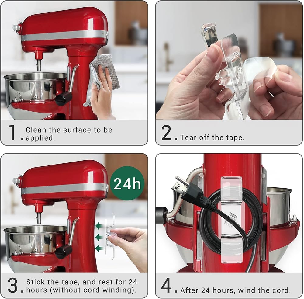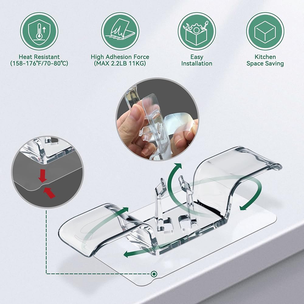 سهل اللصق والإزالة من مثبتات الأسلاك: قبل لصق حامل الأسلاك هذا للأجهزة بمعداتك، قم بتنظيف وتجفيف سطح الجهاز بالكحول، انزع الملصق الشفاف، وألصقه واتركه لمدة 24 ساعة قبل استخدامه.