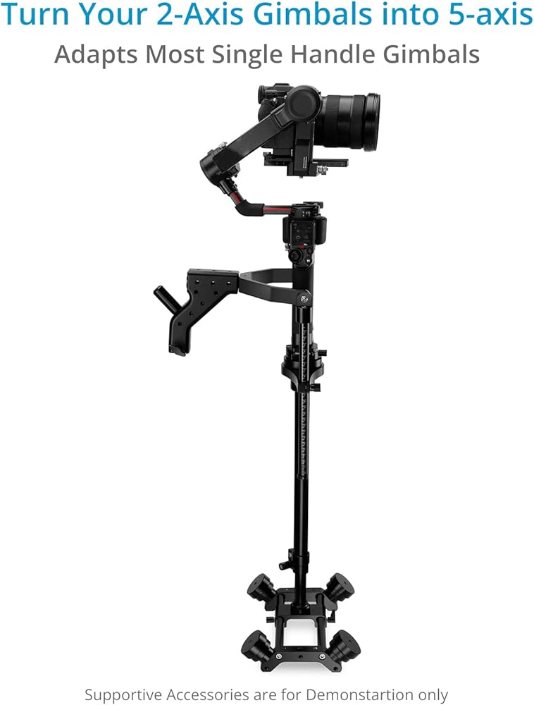 التقط وقتًا أطول وقم بإنشاء حركات سينمائية أكبر باستخدام مثبت جي اكسس 5000 من فلايكام للجيمبال، والذي يسمح لك بتحويل وزن جيمبال بما في ذلك إعداد الكاميرا الثقيلة على الجسم بالكامل من خلال ذراعك وسترتك. يمكن استخدامه كإعداد كامل لذراعك وصدرتك، وهو مثبت مثبت مع حامل جيمبال يجعل المرئيات أكثر سلاسة بشكل ملحوظ عند المحور z، لأعلى أو لأسفل وانتقال الوضع العالي إلى المنخفض. يوفر إمكانية تعديل الارتفاع مما يحقق توازنًا مثاليًا ويخلق لقطات سينمائية تنتقل من زاوية منخفضة إلى عالية وزاوية عالية إلى زاوية منخفضة. يضمن التعديل من جانب إلى آخر تحديد الموقع الدقيق للعمود المركزي والإعداد مما يساعد أيضًا في التوازن الصحيح. يأتي مع محول على شكل حرف C حتى تتمكن من استخدام الحامل لعملية التوازن أو ما بين الأدوات لإمساكه. يتضمن أثقال موازنة يمكن إضافتها/ضبط حسب المتطلبات. تتكيف بسهولة مع معظم جيمبال بمحرك بمقبض واحد. تتكيف بشكل مثالي مع الذراع والسترة التي يبلغ قطر دبوس التثبيت 16 ملم. المقبض مزود بخيوط ¼ انش لتثبيت الملحقات مثل الشاشة ومتابعة التركيز وما إلى ذلك. مواصفات التثبيت: البناء: ألومنيوم سي ان سي عالي الجودة، الحمولة: 6 كجم/13.2 باوند، الذراع والسترة المتوافقة: ذراع وسترة فلاي كام جالاكسي مثبت الكاميرا (GLXY-AV) فلايكام فيستا II ذراع وسترة (VSTA-II-AV) انحراف متوافق: لوحات الوزن للمقبض اليدوي: 12 قطعة (الوزن الإجمالي = 1.6 كجم) قابل للتعديل نطاق منمن: ارتفاع المقبض التعديل: 24 سم عمود تلسكوبي: 26 سم حامل من جانب إلى جانب: 20 سم وزن المنتج (بدون التعبئة): 4.4 كجم/9.70 باوند وزن المنتج الحجمي (مع التعبئة): 5.6 كجم/12.3 باوند P-QRG مواصفات اللوحة: البناء: ألومنيوم سي ان سي عالي الجودة، محتويات الصندوق: Flycam G-Axis 5000 وزن القاعدة منصة منصة Gimbal دعم حقيبة غسيل بمقبض بسقاطة أوزان 12 × عبوة من P-QRG