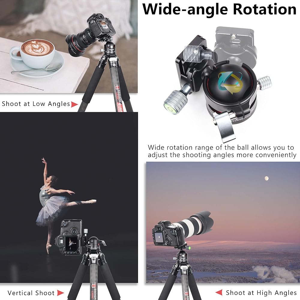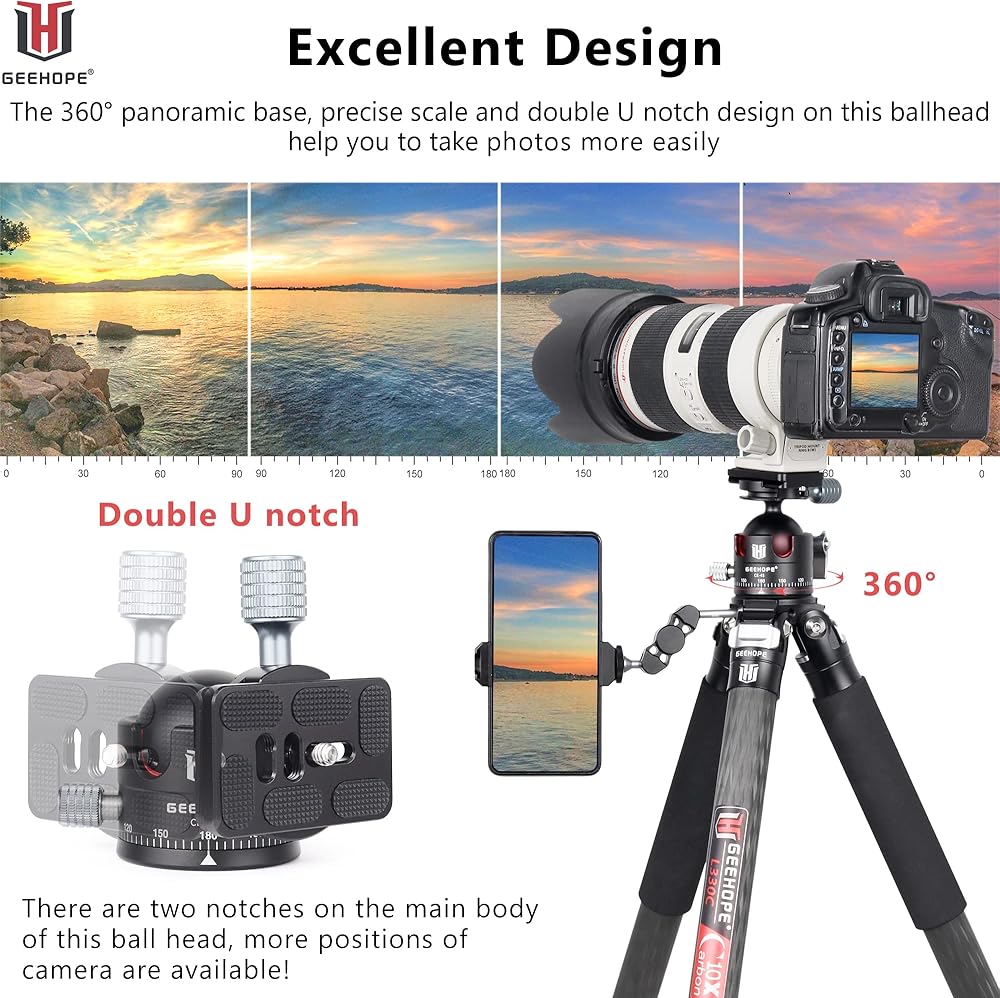 🔶دوران بزاوية واسعة👍 تساعدك القاعدة البانورامية بزاوية 360 درجة والمقياس الدقيق والتصميم المزدوج على شكل حرف U على التقاط الصور بسهولة أكبر. الكرة التي يمكن تدويرها بزوايا متعددة، مما يساعد على إيجاد زاوية التصوير بسرعة.