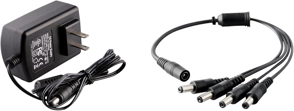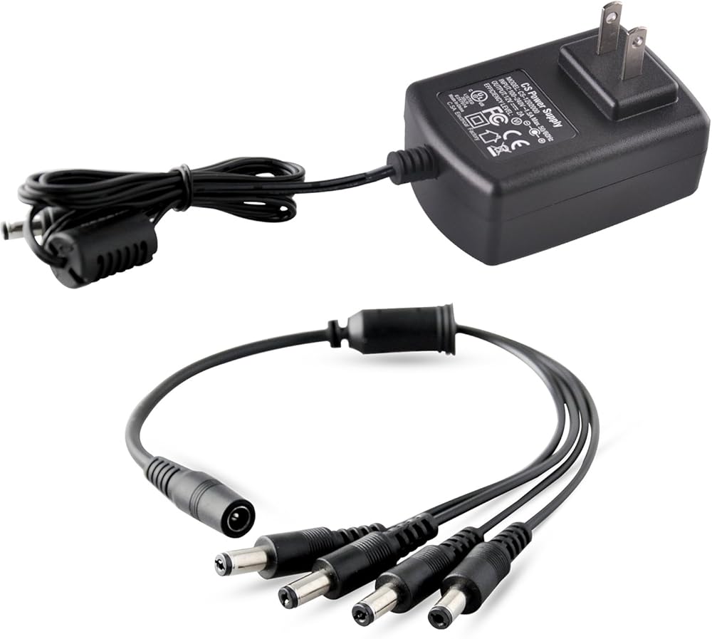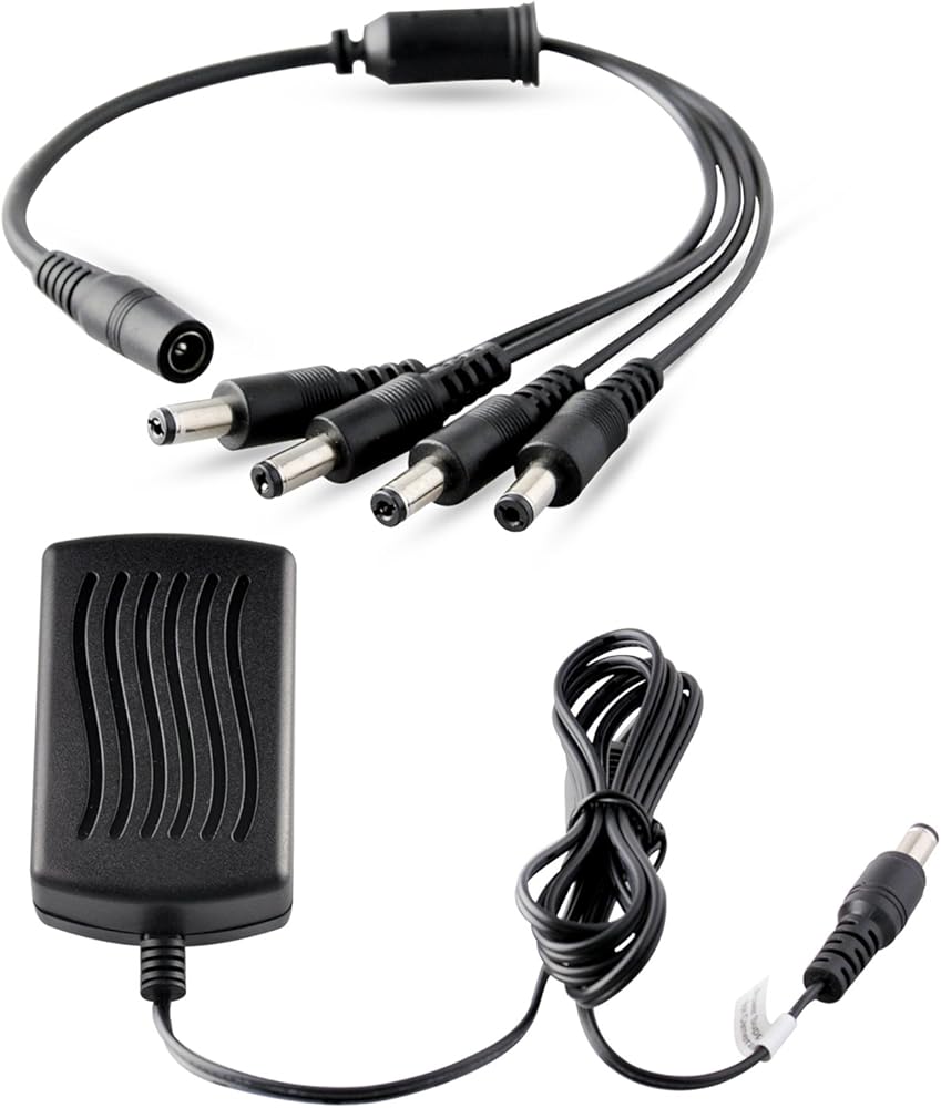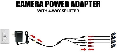 محول طاقة كاميرا الأمان مع مقسم، كابل كاميرا ISEEUSEE 12 فولت 2 أمبير 100 فولت - 240 فولت مع كابل مقسم طاقة 4 اتجاهات من لجنة الاتصالات الفيدرالية (FCC) ومحول طاقة CCTV معتمد من UL - يناسب محولات الطاقة التناظرية/AHD DVR/الكاميرا