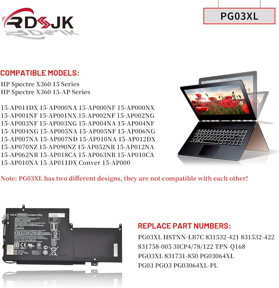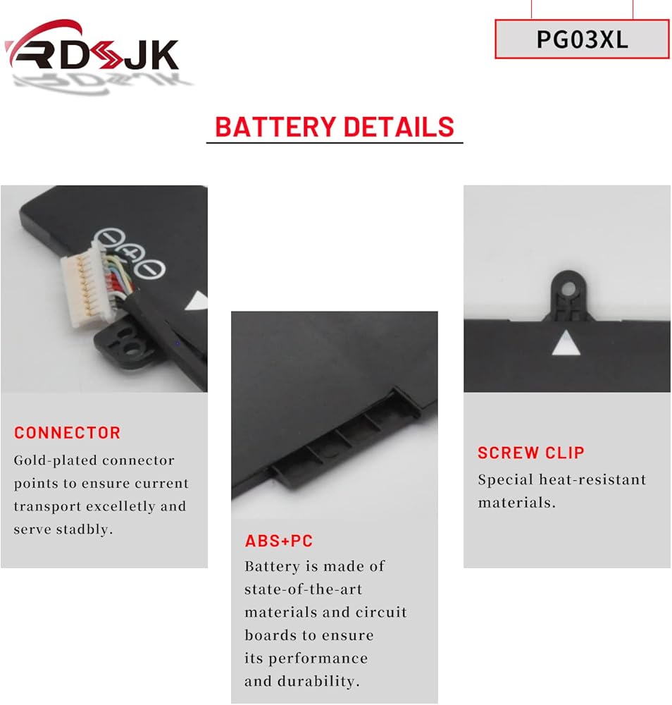 لدى PG03XL تصميمان مختلفان، وهما غير متوافقين مع بعضهما البعض، يرجى التأكد من أن البطارية الأصلية هي نفس الصورة قبل الشراء.