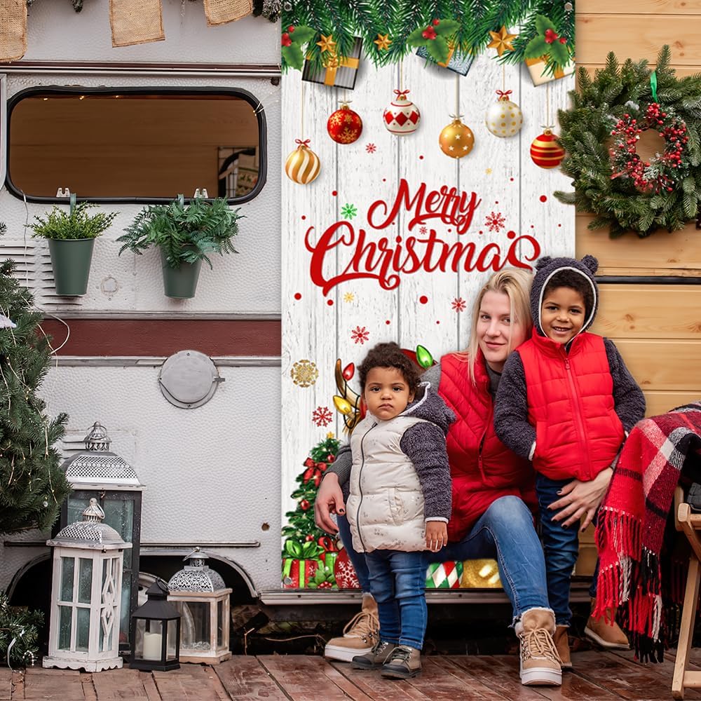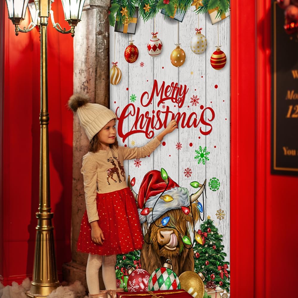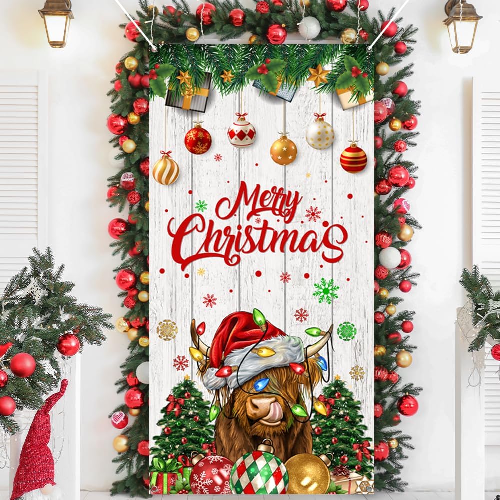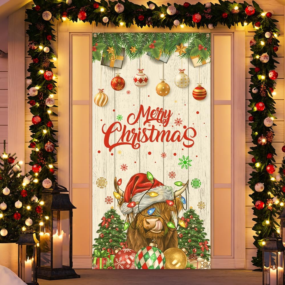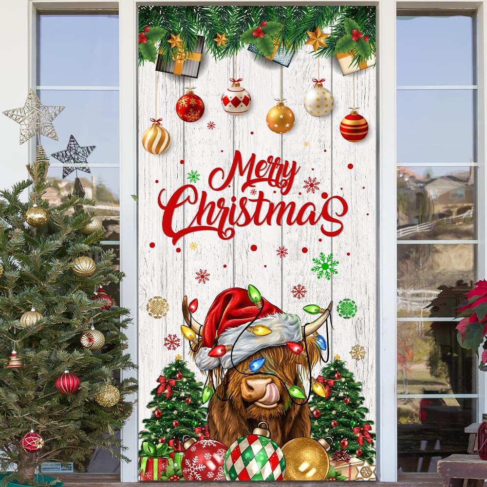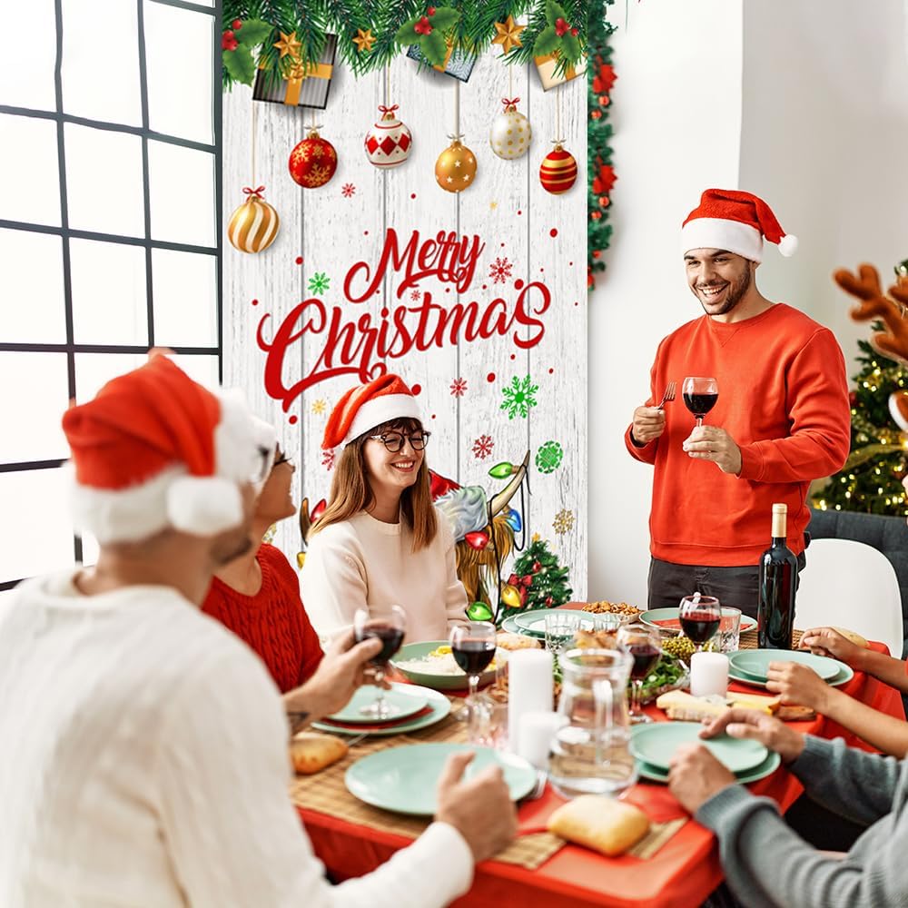 الوردي عيد الميلاد غطاء الباب الزينة خمر سانتا كلوز خلفية معلقة راية الشرفة علامة عيد الميلاد عيد ميلاد سعيد الشرفة علامة للداخلية خارج الباب الأمامي لوازم الحفلات (البقرة)
