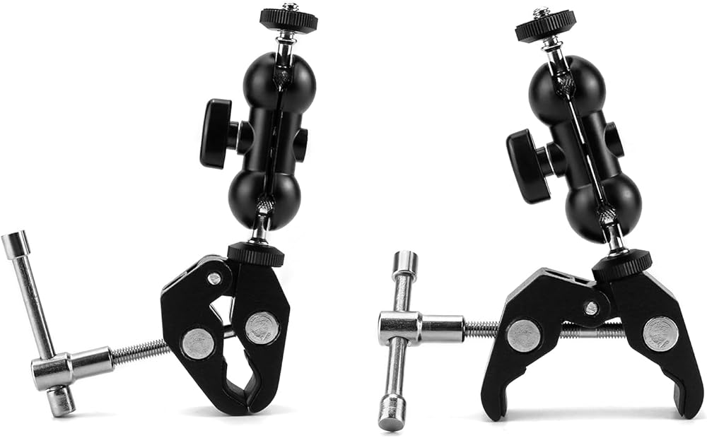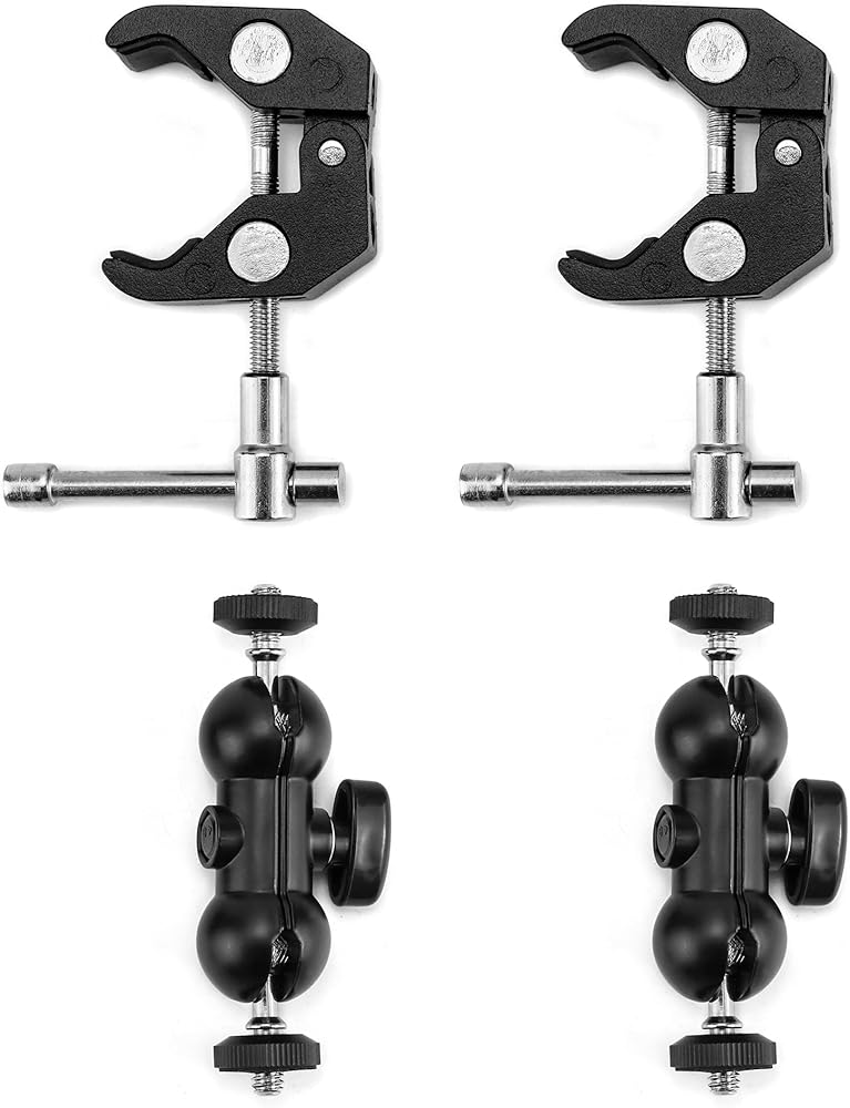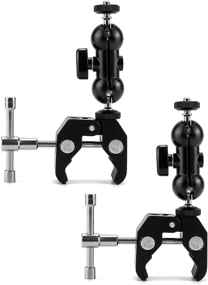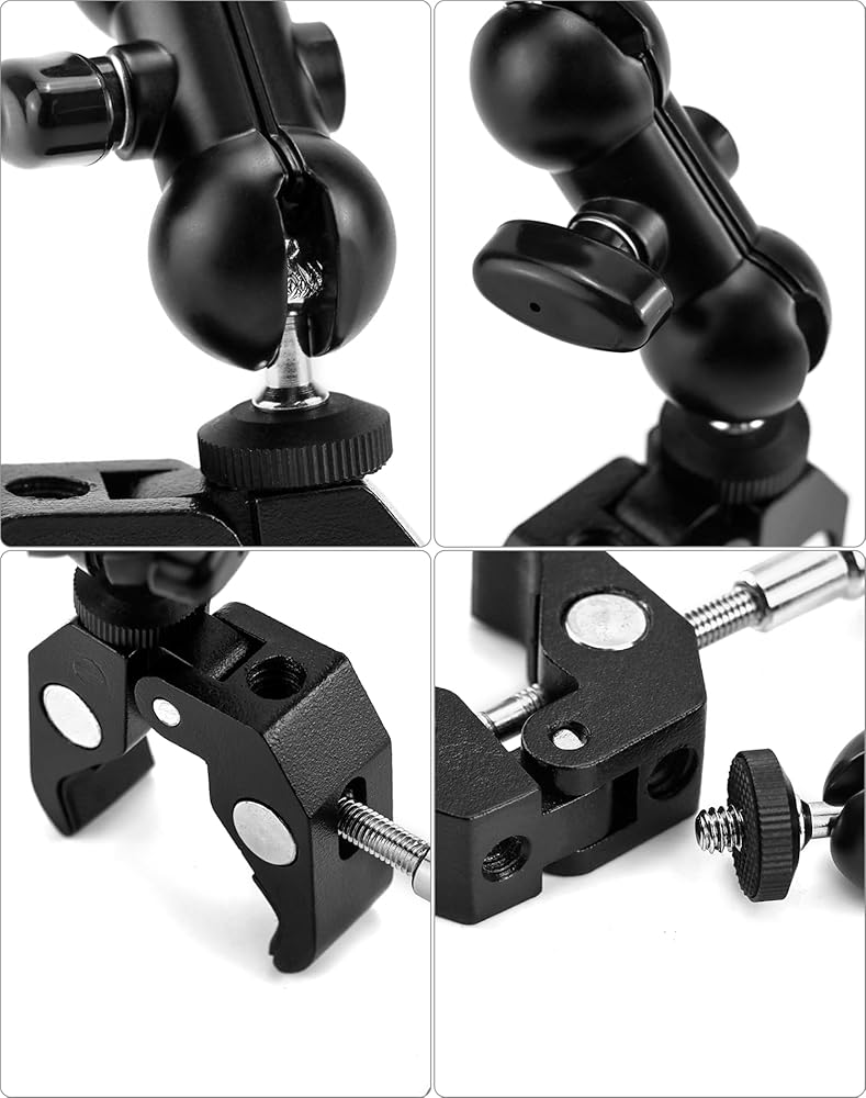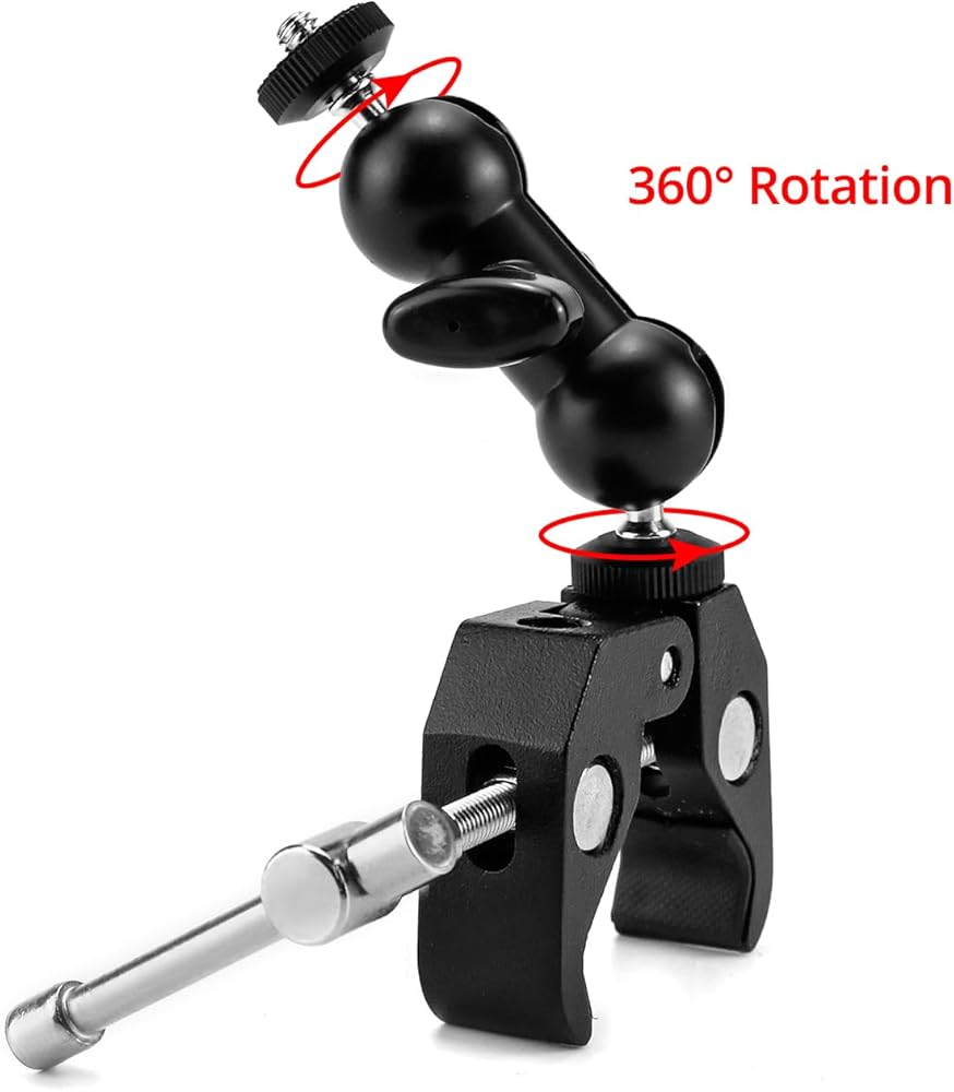 • ملاءمة عالمية: تساعدك الخيوط الداخلية مقاس 1/4 بوصة و3/8 بوصة الموجودة في الجزء الخلفي من المشبك على تركيب الكاميرات الصغيرة والشاشات وأضواء الفيديو LED والميكروفونات والفلاش والمزيد. متوافق أيضًا مع ضوء الفلاش الموجود على الكاميرا، والقفص، وكاميرا الحركة.