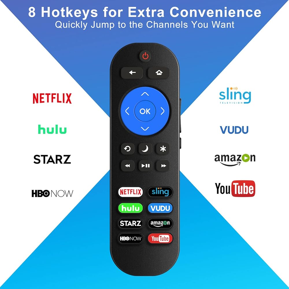 جهاز التحكم عن بعد للتلفزيون العالمي لتلفزيون Roku، لجهاز TCL Hisense Onn Sanyo Philips Sharp JVC Hitachi Element Roku TV Remote، جهاز التحكم عن بعد للتلفزيون مع Netflix Sling Hulu Vudu Starz Amazon HBONOW YouTube Buttons مع البطاريات