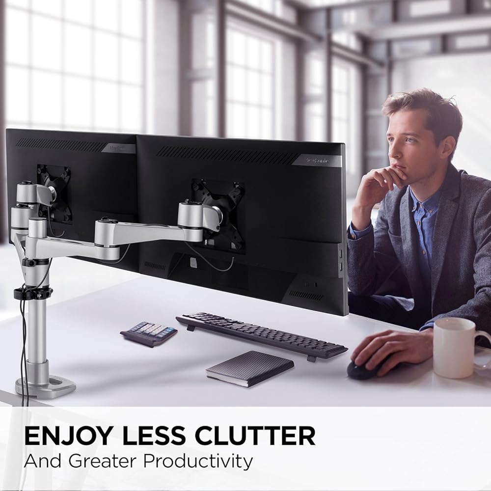 يستوعب شاشتين يصل حجمهما إلى 24 بوصة، ويرفعهما لأعلى وخارج سطح المكتب لزيادة مساحة العمل والإنتاجية