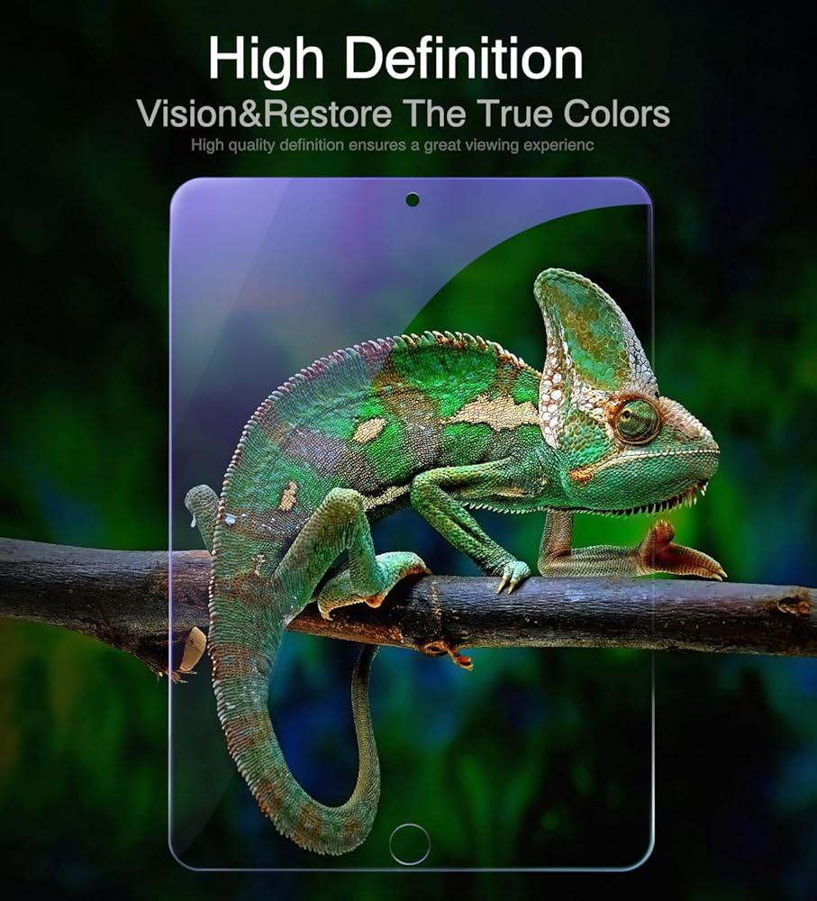 [حماية فائقة] - تم تصميم واقي الشاشة الخاص بنا من مصادر محلية خصيصًا لجهاز iPad مقاس 10.2 بوصة، مما يضمن ضمان الجودة. مع تصنيف 9H المذهل، فإنه يوفر حماية فائقة ضد الخدوش والتأثيرات، مما يحافظ على شاشة جهازك نظيفة وخالية من العيوب.