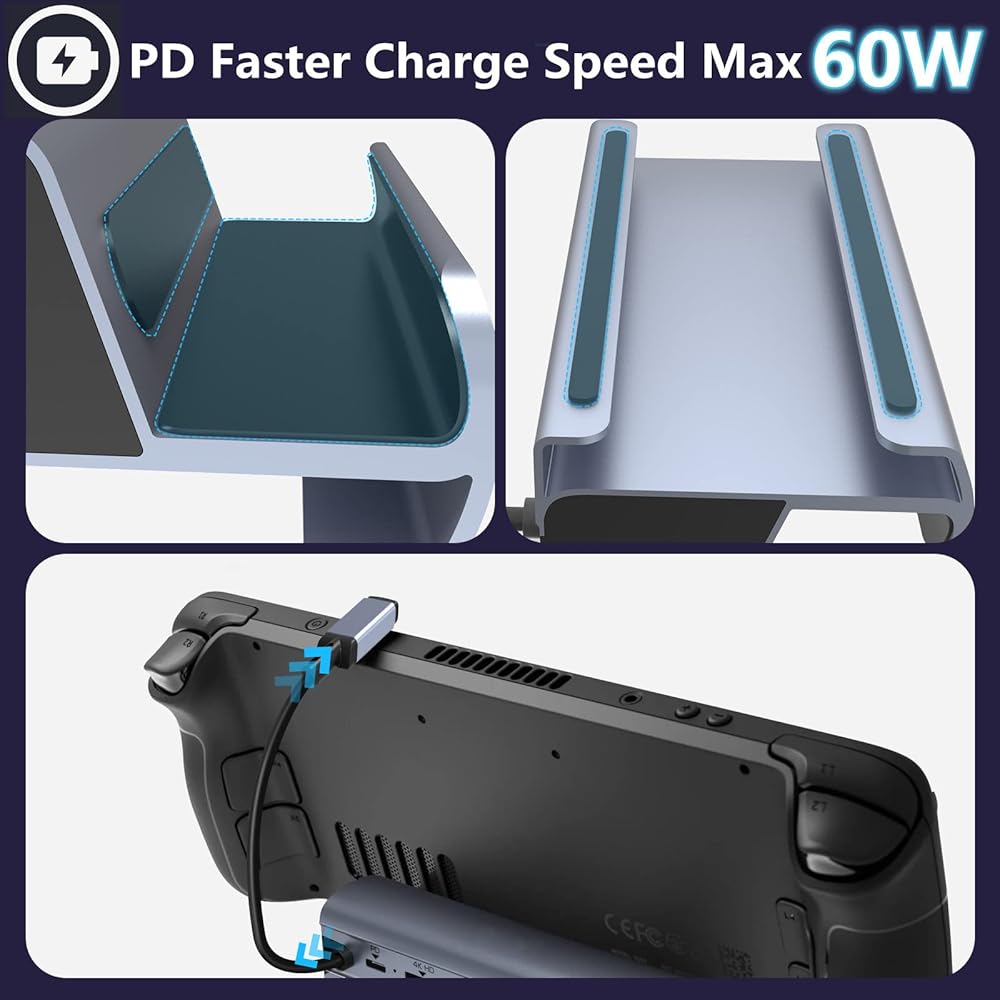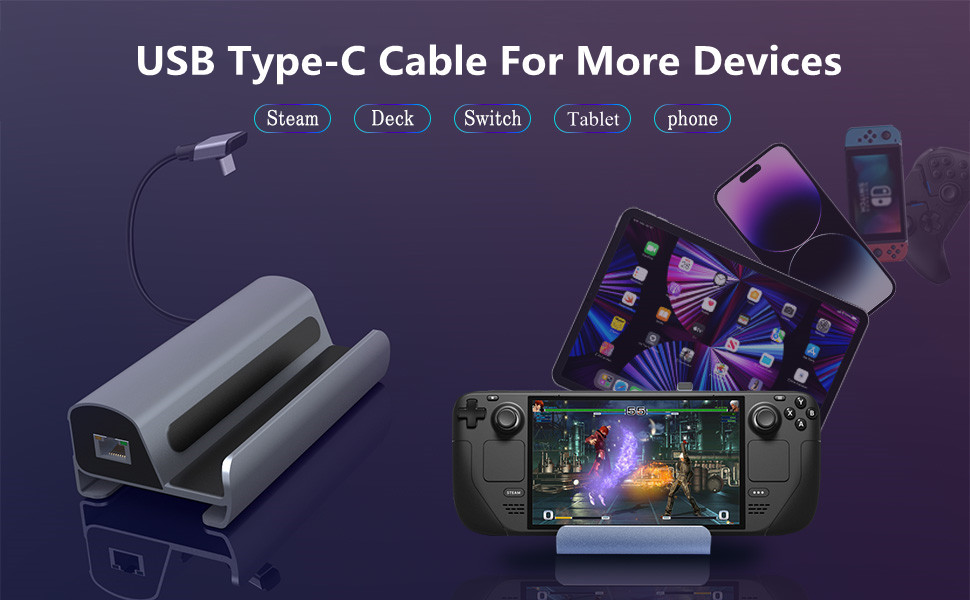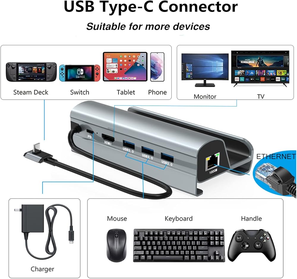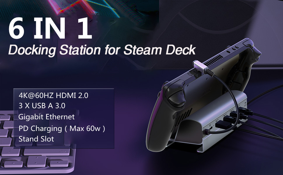 Wide Compatibility The 6-in-1 Steam Deck Docking Station is the perfect fusion of hub and stand - no need to buy the usual hub and stand base for Steam Deck. This docking station can be used not only for Steam Deck, but also for tablets, laptops and smartphones with USB Type-C ports.